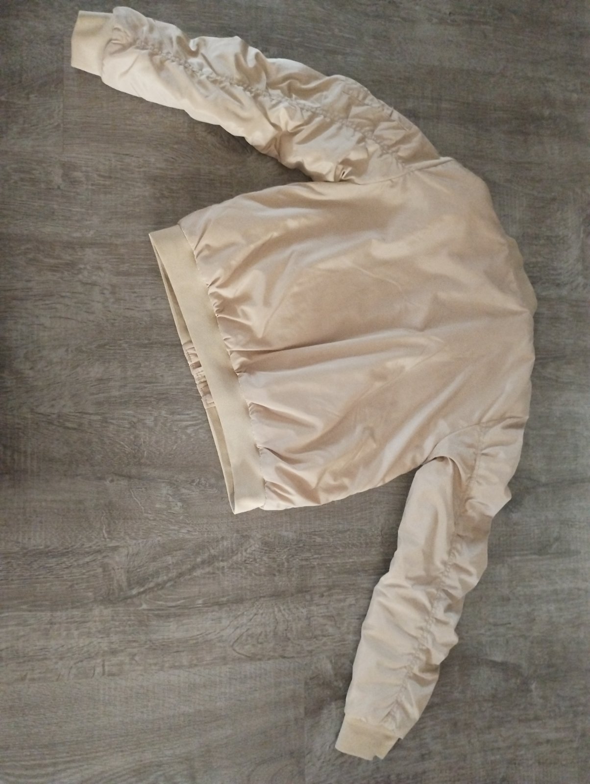 Pekna bundicka. Kupovana v Takko. Nosena len mojou dcerou. V super stave, len na chrbte som nasla maly nenapadny fliacik. ROZMERY: dlzka: 58 cm, sirka pod pazuchami: 45 cm, rukav od pleca 61 cm, o...