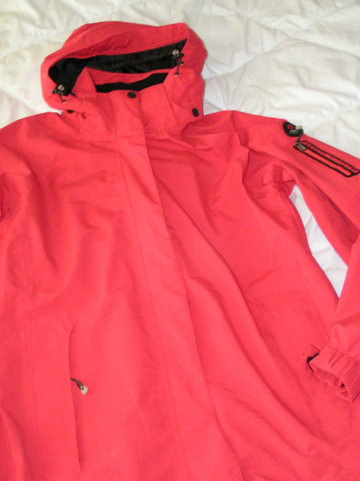 Prechodná vetrovka koralovej farby. Veľmi pekný stav.