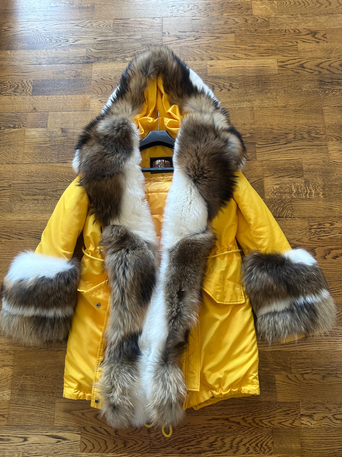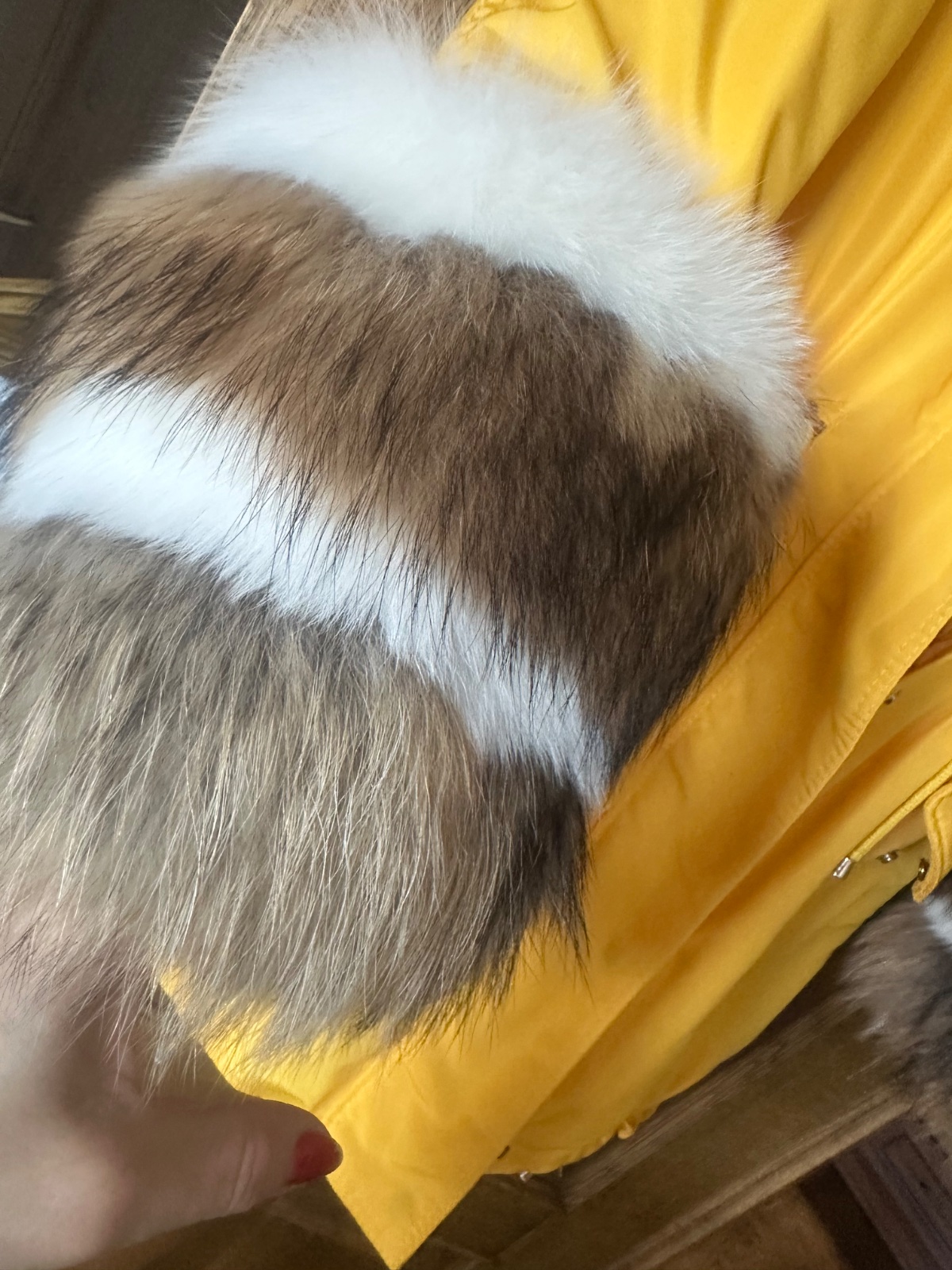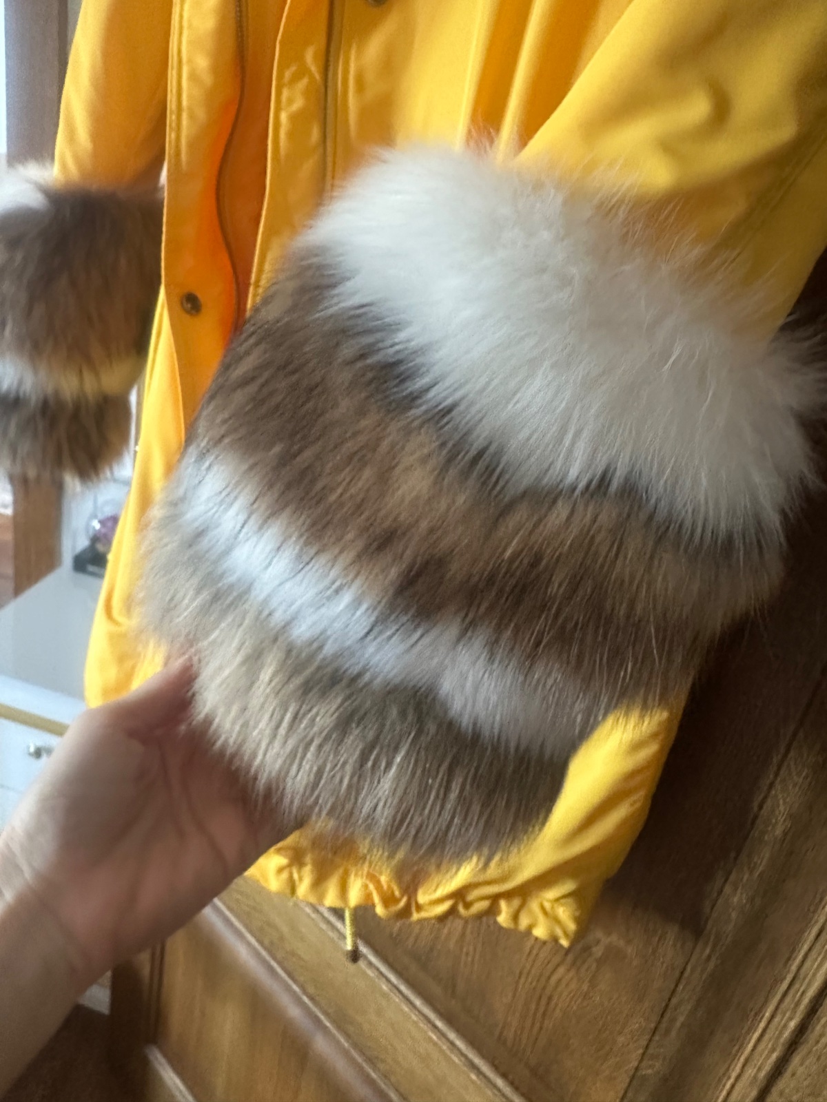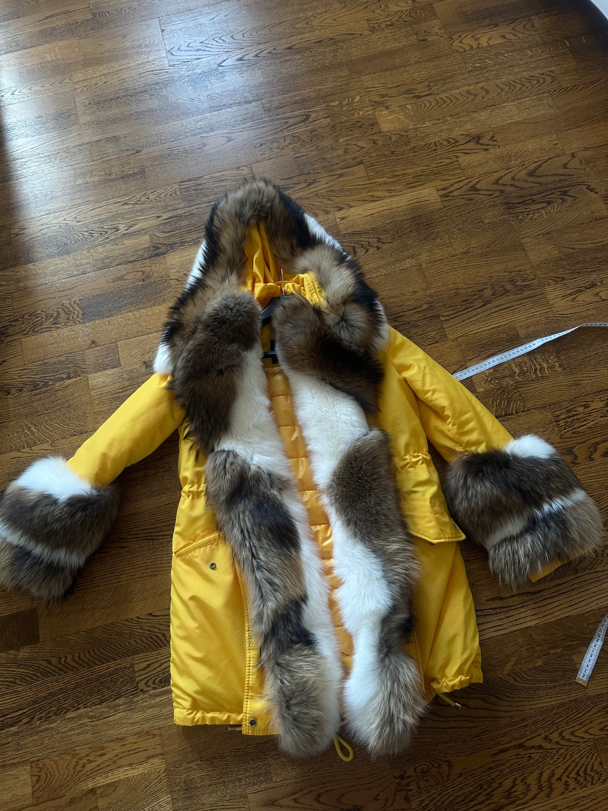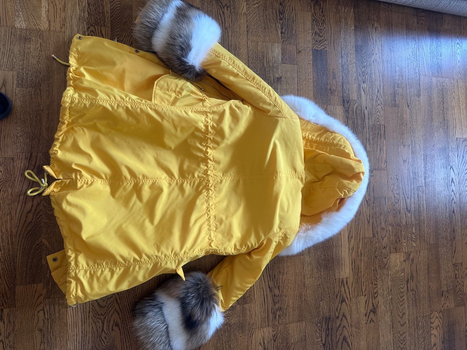 Krásna bunda s odopinatelnou kozusinou s líšky. Prekrásny kúsok raz oblečený na pól hodinku. Mne je veľký .Dá sa odopnut kozusina z cele bundy sa dá prať v práčke.,Pôvodná cena 900€ Velkostne M-L posledná zľava. V skutočnosti krajšia ako na foto.