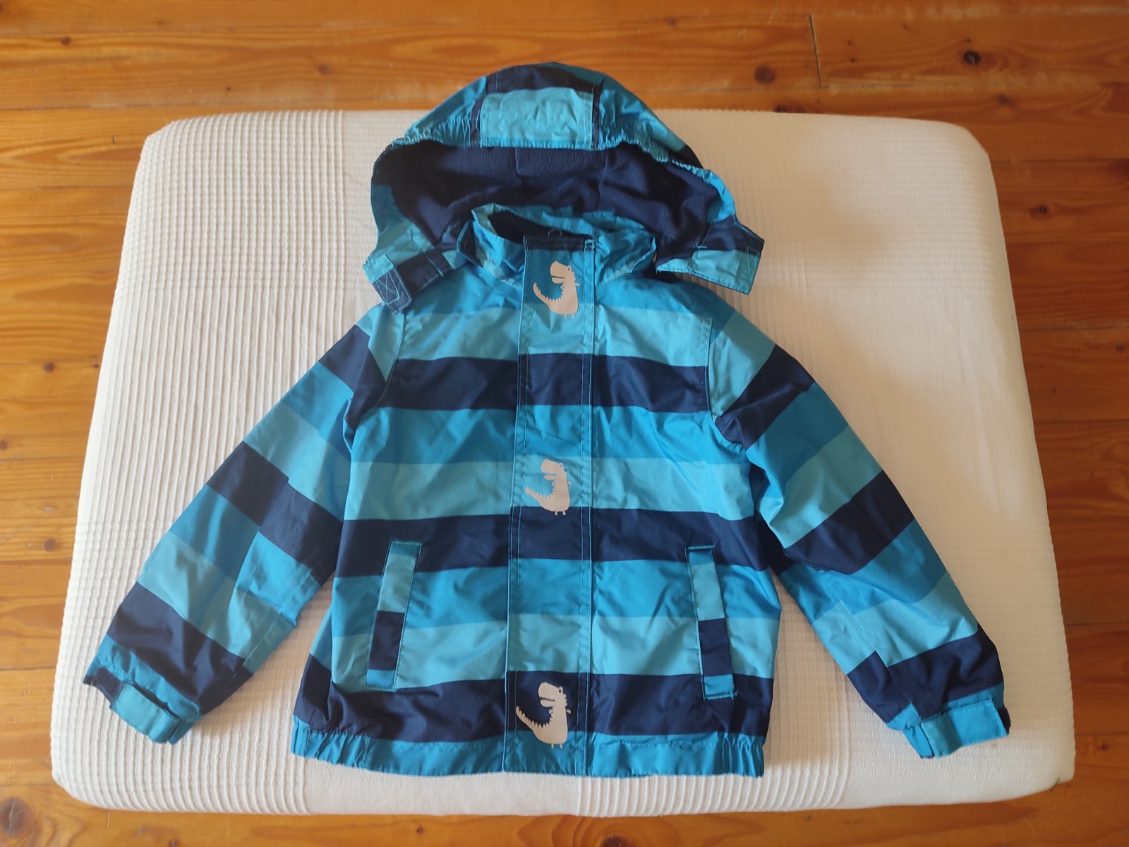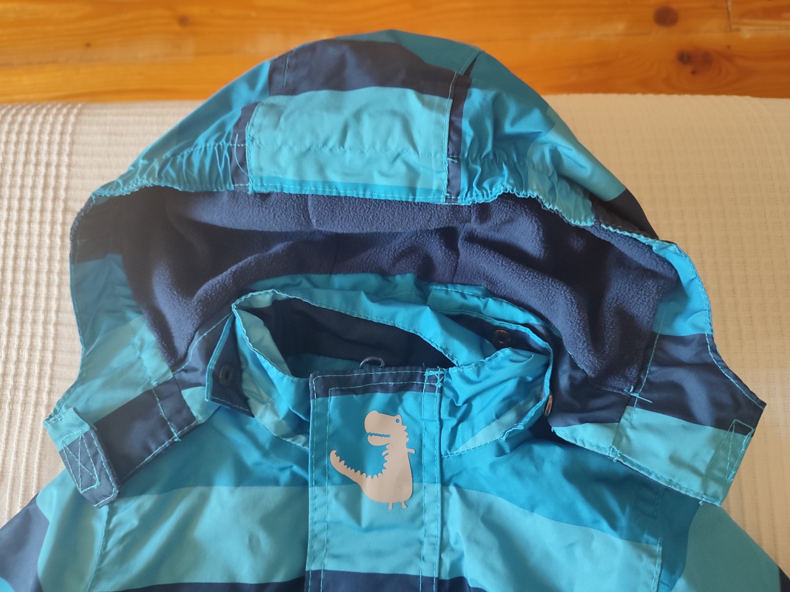 Posuniem ďalej mierne zateplenú prechodnú vetrovku pre chlapca. Je bez poškodenia s odopinateľnou kapucňou. Dráčik je reflexný takže v tme svieti všade kde je na bunde. Rukáv sa dá sťahovať, viď.foto. Cena je bez poštovného. Ďakujem za nahliadnutie.