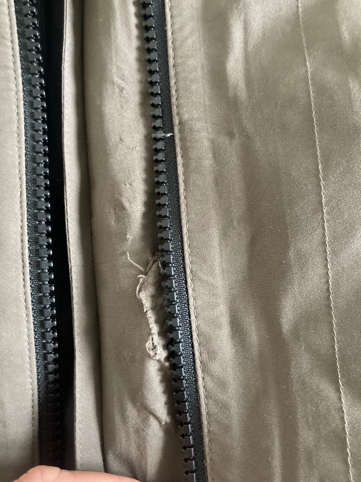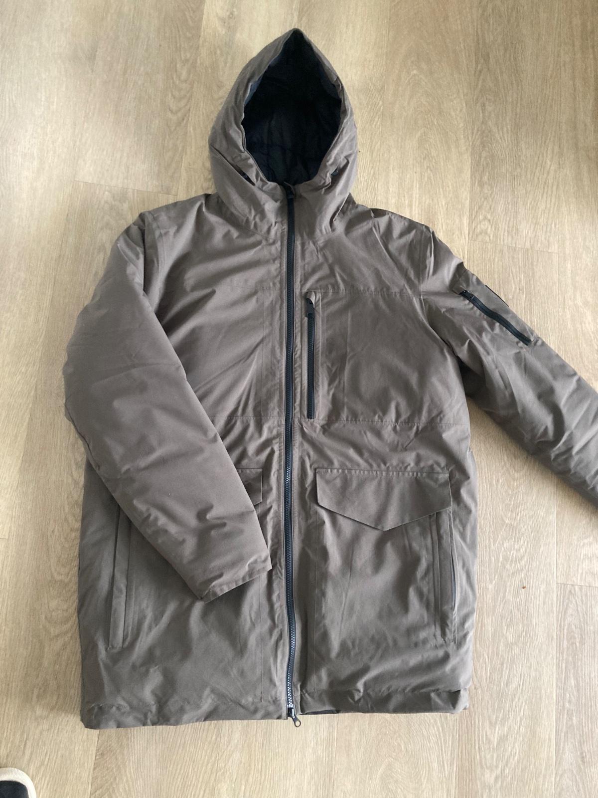 krásna teplá páperová bunda. Manžel ju mal oblečenú asi 4x, teraz je mu už tesná. Malé zatrhnutie z vnútornej strany zipsu. / Manžel nešikovne zatiahol zipsom-bežcom/.Pri zapnutej bunde to nie vidno.