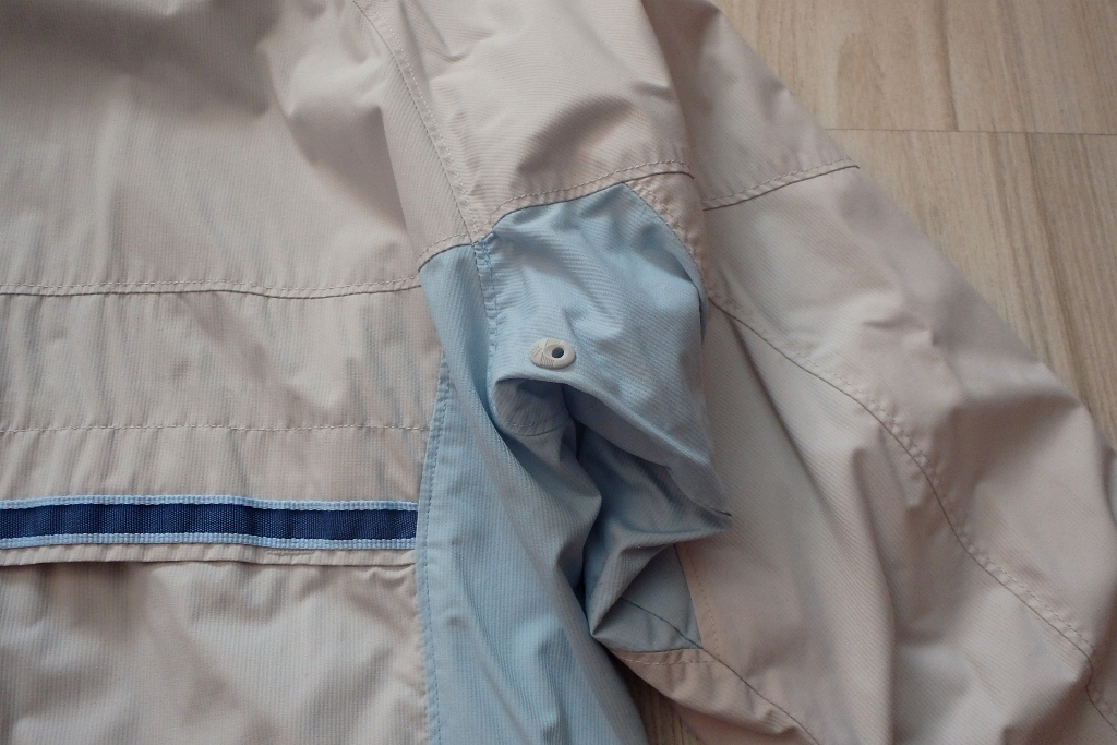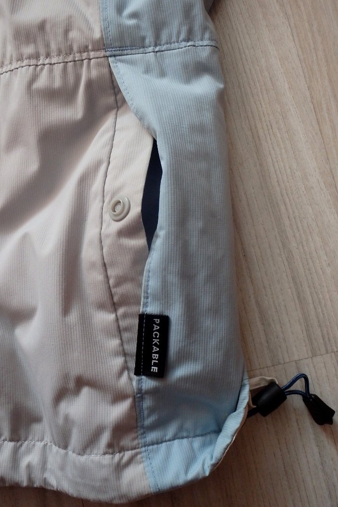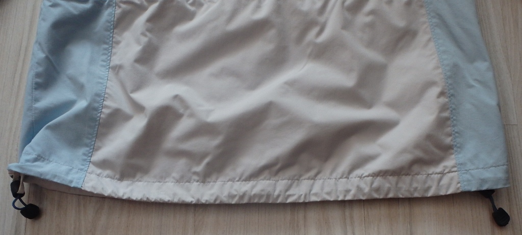 Na spodku vetrovky sú sťahovacie gumky, rovnako aj približne v páse zvnútra, takže sa dá šírka upraviť.