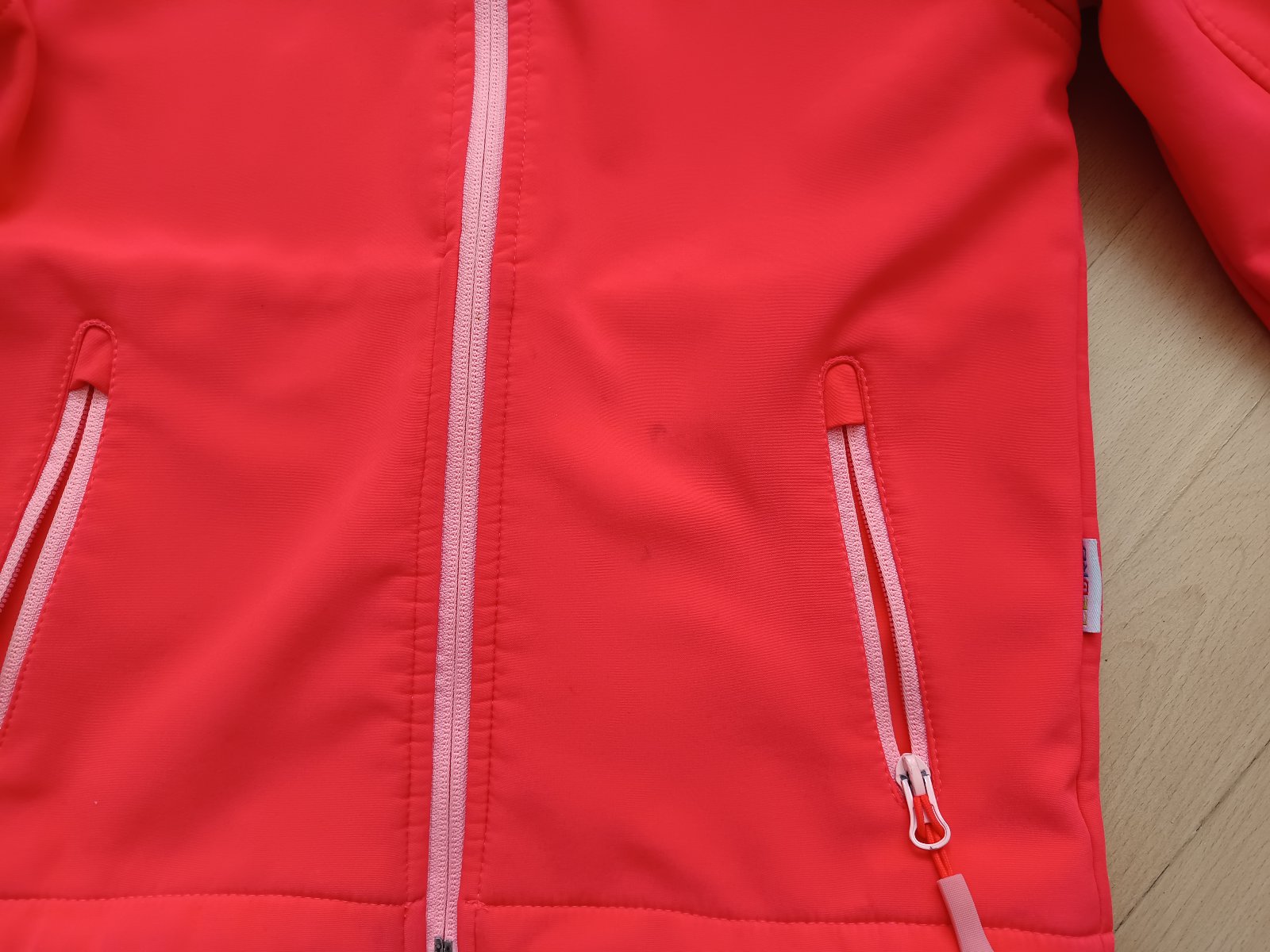 dievčenská bunda, má škvrny v predu, vzadu a na manžete rukáva