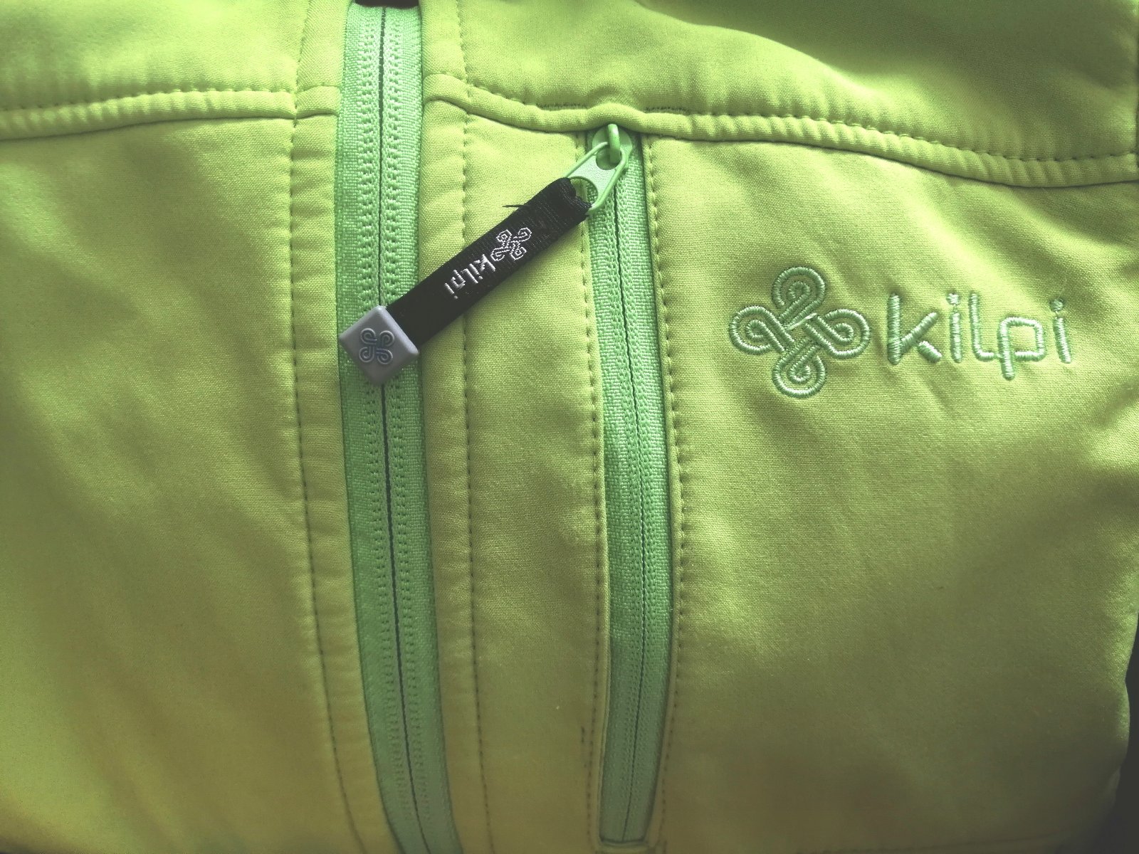 Jablkovozelená softshellová bundička s flísom zn. KILPI. Podšite spoje. S membránou. Vrchný materiál Siberium 5000 SRC SS (waterproof), vetruodolná. Kvalitná fungujúce zipsy. Odopínateľná kapucňa. Nastaviteľné stiahnutie proti podfukovaniu na dolnom okraji bundy.