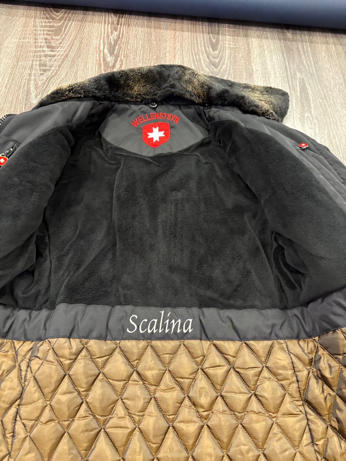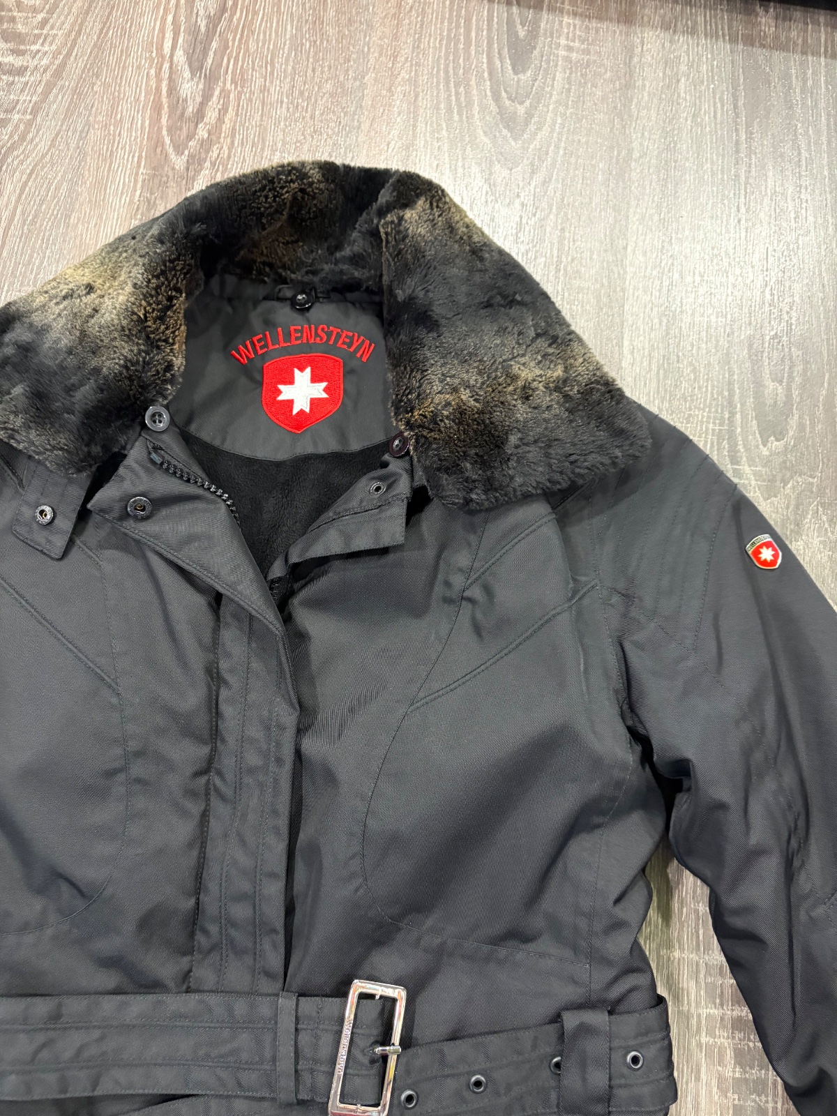 Wellensteyn zimna damska vetrovka,premakana do posledneho detailu,velkost S no sadne aj na M.Vnutorne vrecka na zips,v pase je opasok,zapinanie na zips a cvoky.Dlzka je 75cm,dlzka rukava od krku je 79cm,sirka v podpazusi je 48x2cm,sirka v pase je 46x2cm.Kozusinka sa da odopnut.Fakt krasna