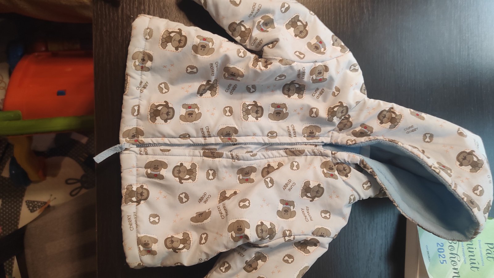 Teplá bundička na 6-9 mesiacov, no môj malý nosil až keď mal 10-12 mesiacov, bol asi drobnejší. Rozmery si môžete premerať: Dĺžka: 32cm Šírka pod rukávmi: 33,5 cm x2 Dĺžka rukávu od krku: 31 cm Dĺž...