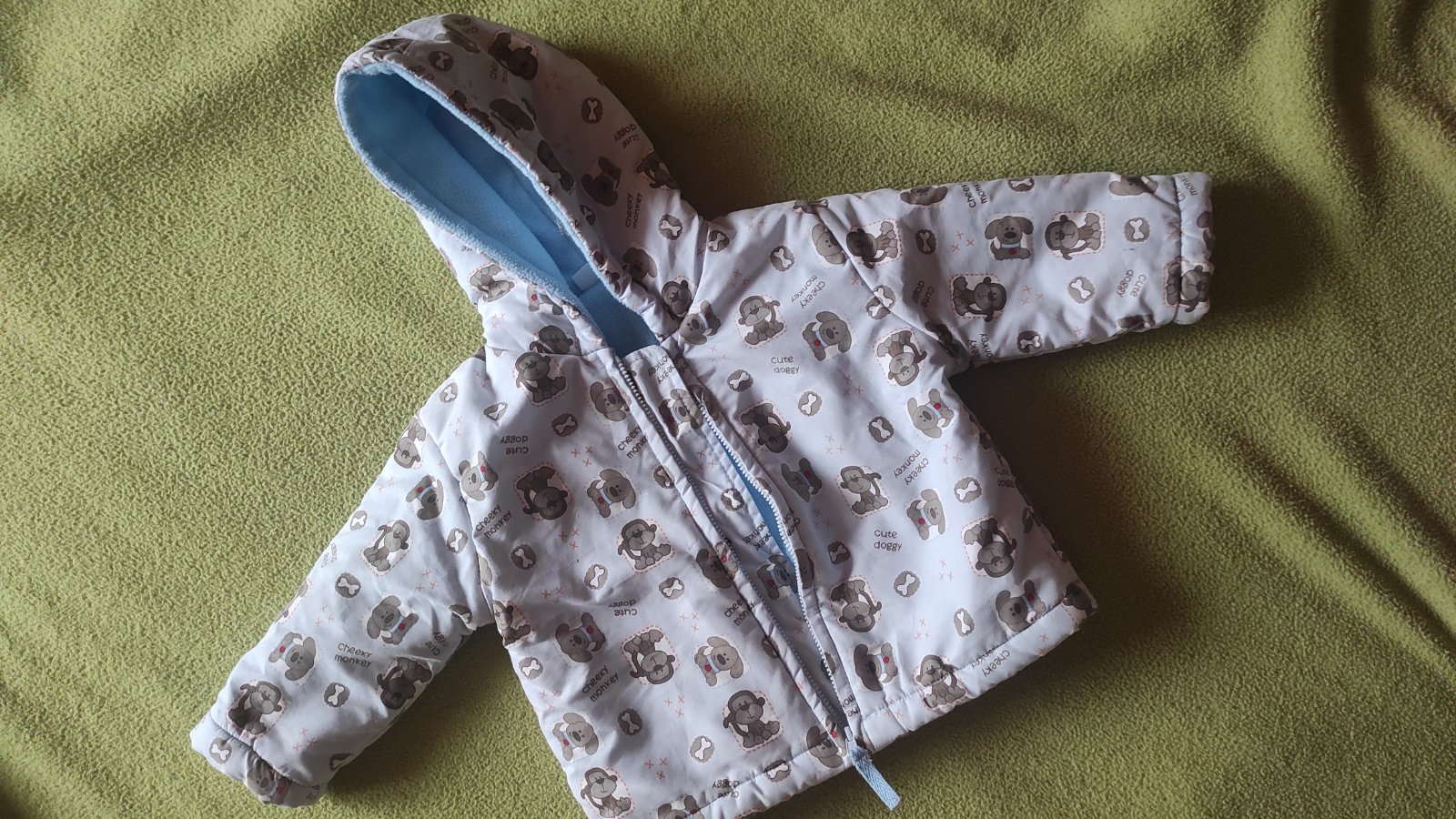 Túto bundičku som kúpila tu na MK ako veľkosť 86. Bundička je naozaj ako nová, veľmi pekná, šedozelenej farby, zips + suchý zips, na miernu zimu. Na štítku je veľkosť 86, ale je nám malá, preto uvá...