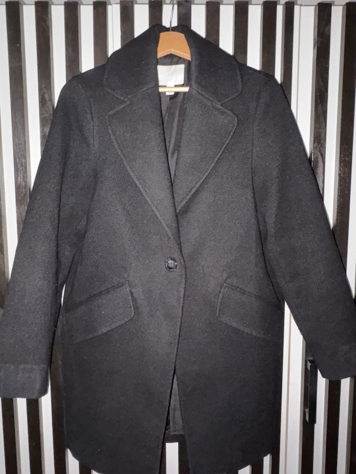 predám v bezchybnom stave čierny kvalitný kabát z H&M číslo píšu 34 dcéra má.164cm.a nosí XS.je jej dobrý na zips a j cvocky dĺžka 88cm šírka 45cm rukávy 13+61cm cena 30eur plus poštovné