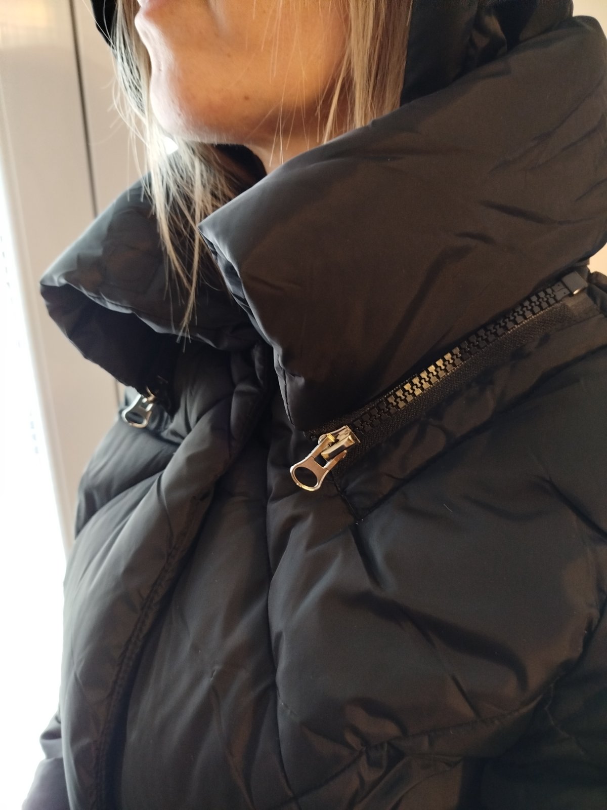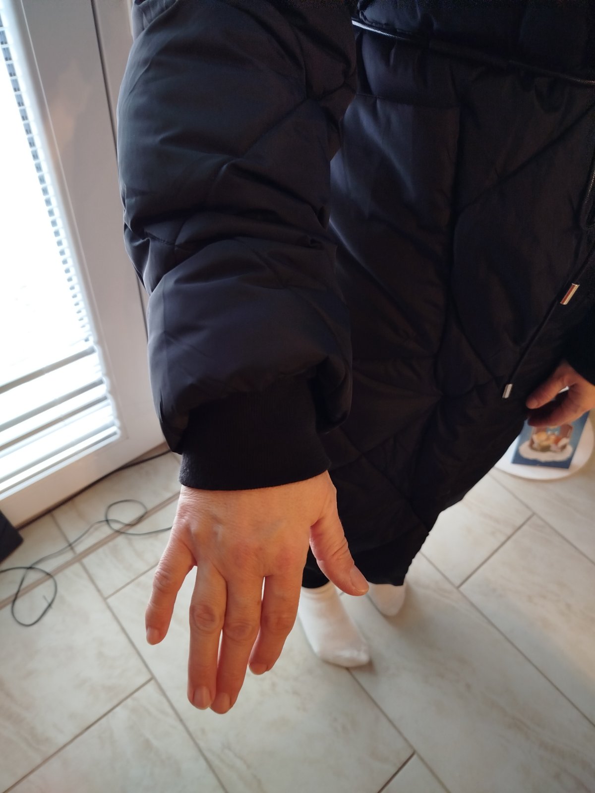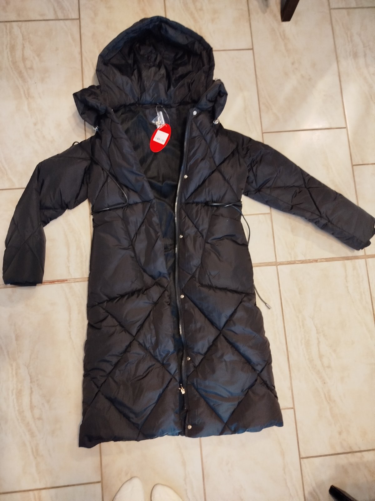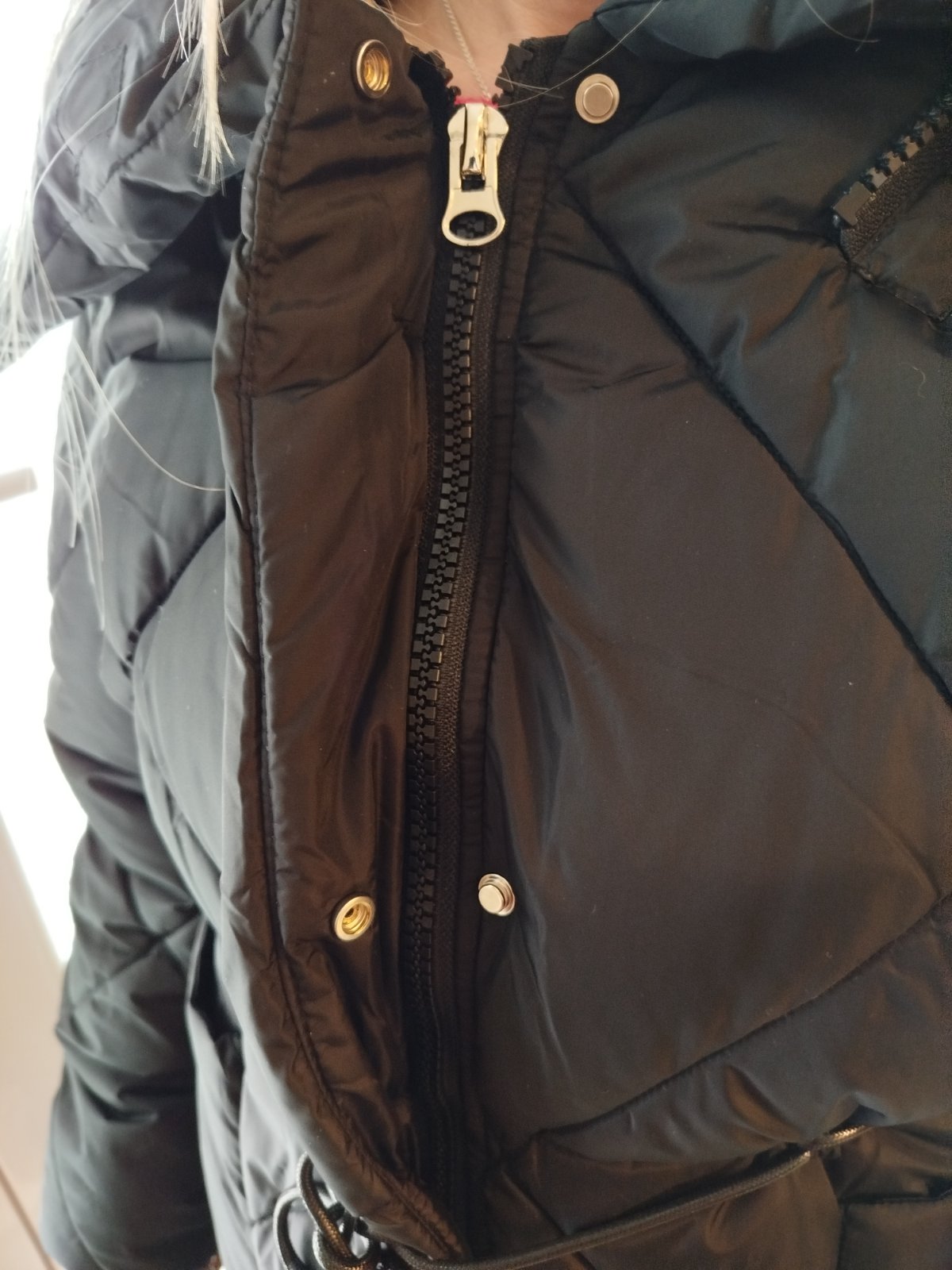 Nová dlhá zimná bunda, veľmi príjemná na nosenie. Žiaľ mne je malá, omylom mi poslali M a ja nosím L. Kapucňa sa dá odopínať a golier upravovať (viď foto).