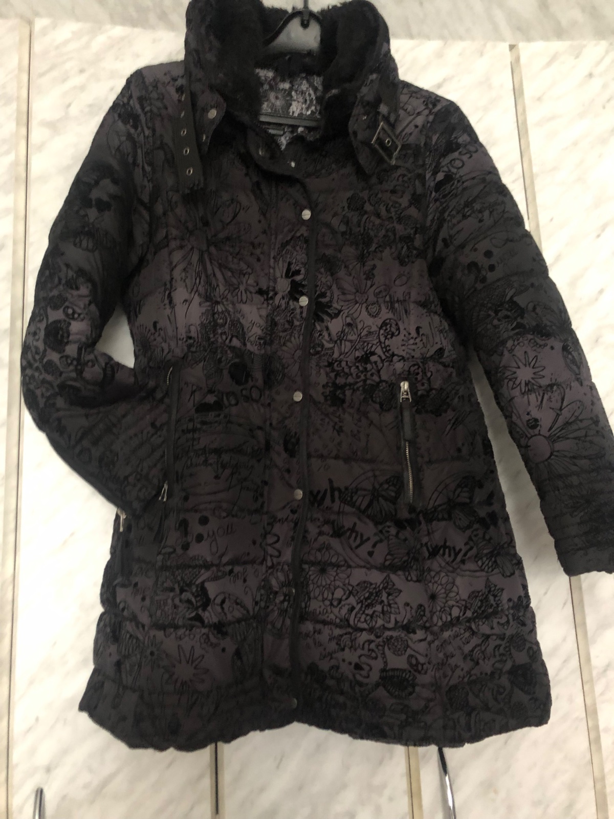 Teplá timná bunda Desigual, farba čiena šedá měírovaná, top stav.