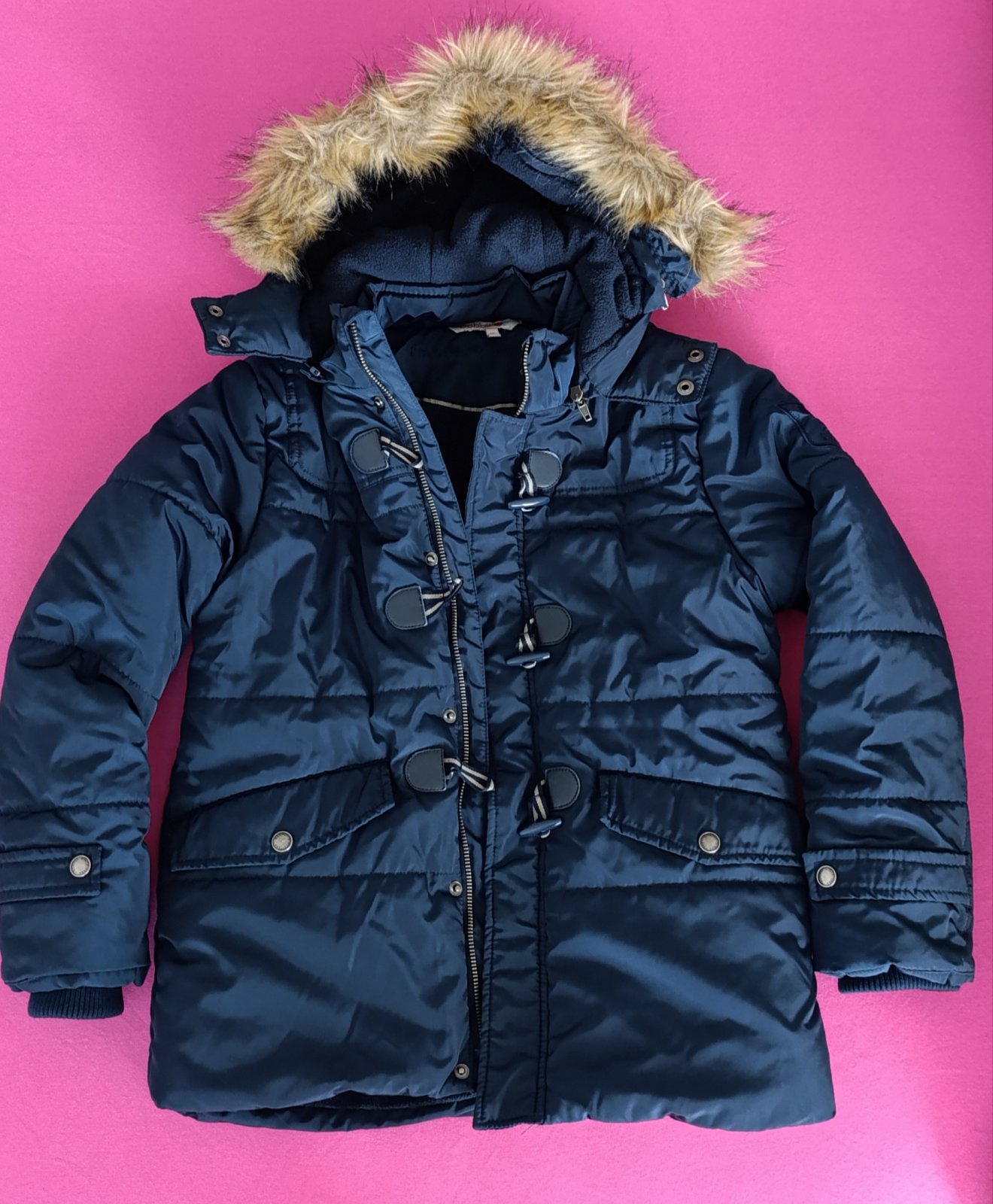 Krásna a teplá zimná bunda kúpená v IT, pôvodná cena 70€, nosená, ale v peknom stave, na zadnej strane mini prepálenie od prskalky viď. foto, pri nosení - nevadí, vnútro podšité flísom, kapuca sa dá odzipsovať, kožušinka sa dá odopnúť