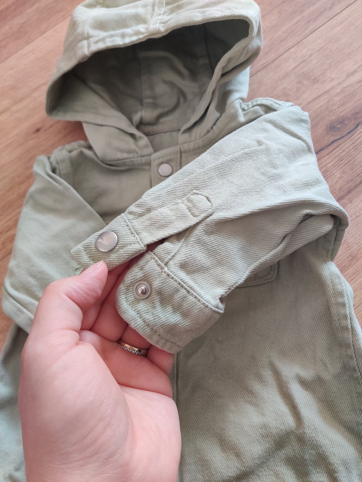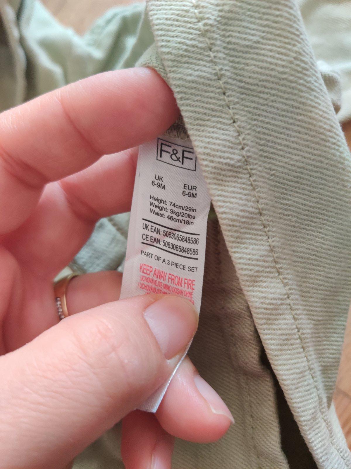 Milá šušťáková nosená bundička, takže samozrejme na látkovych častiach sú žmolky. Je písaná velkosť 80/86 ale menšia, preto udávam 74.