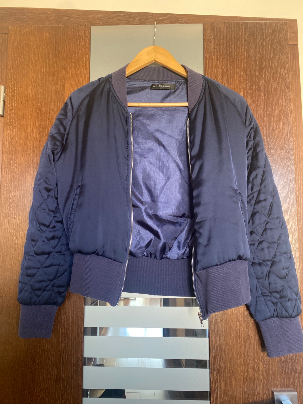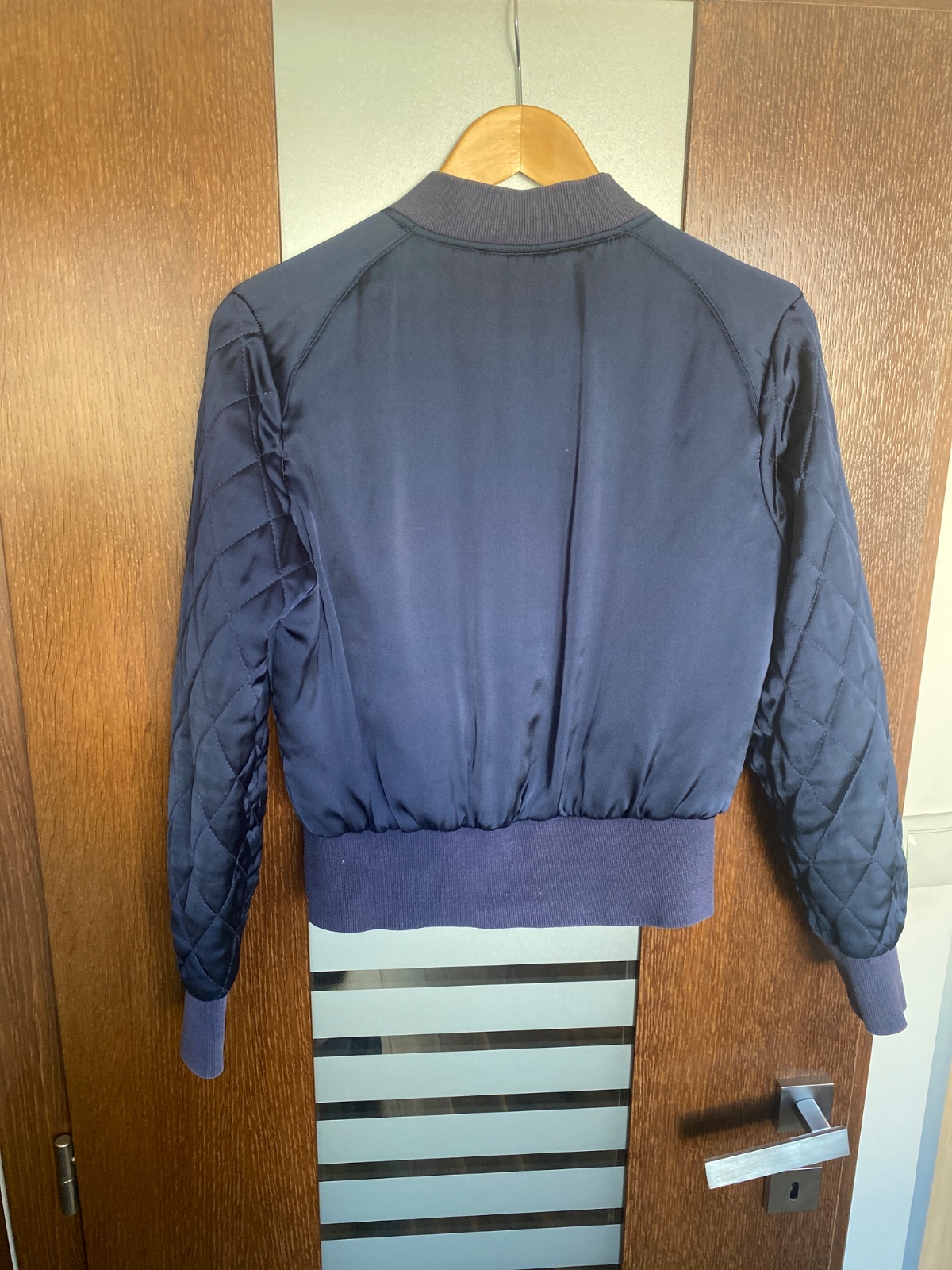 Pekná saténová bundička do pása,písaná velk.M ,ale hodí sa skôr na S.aj vnútro saténové