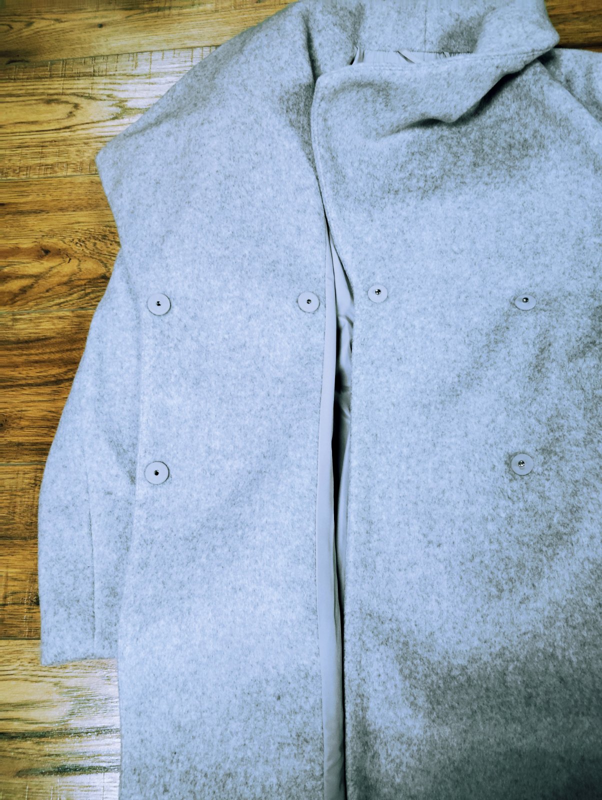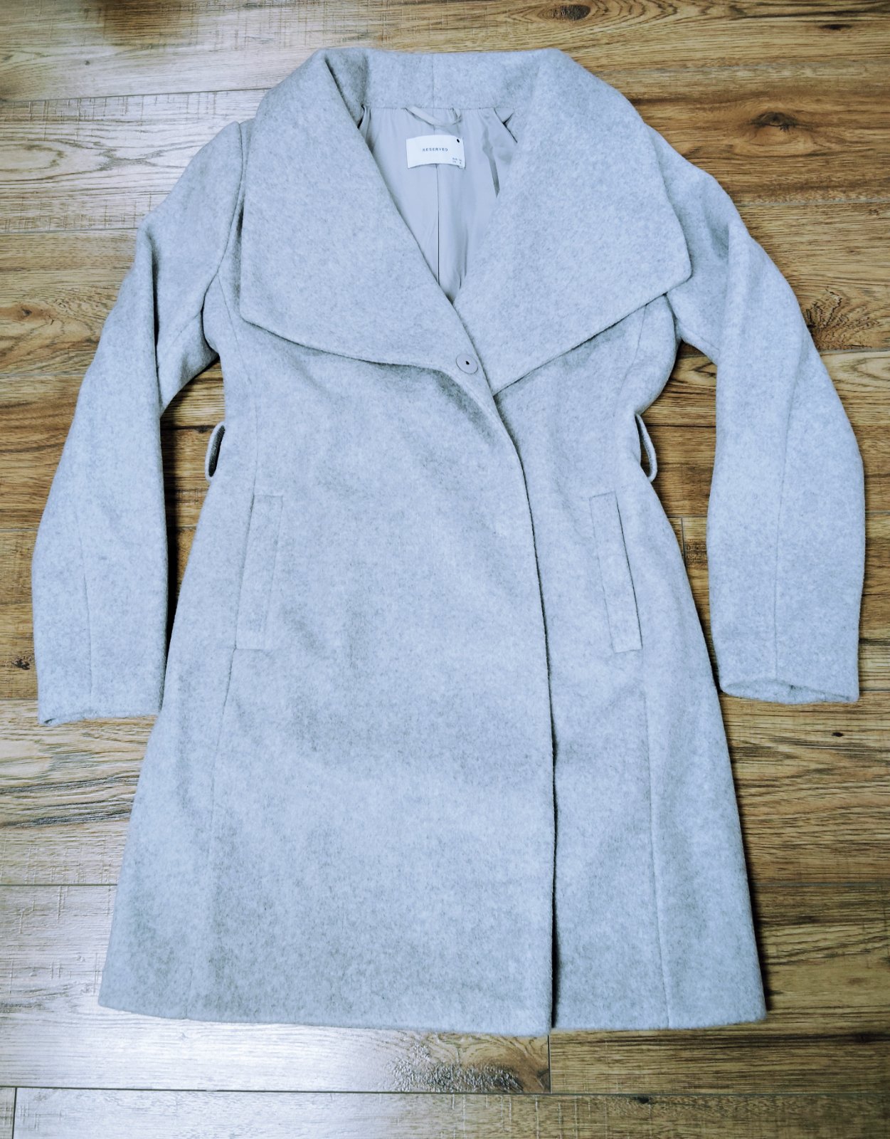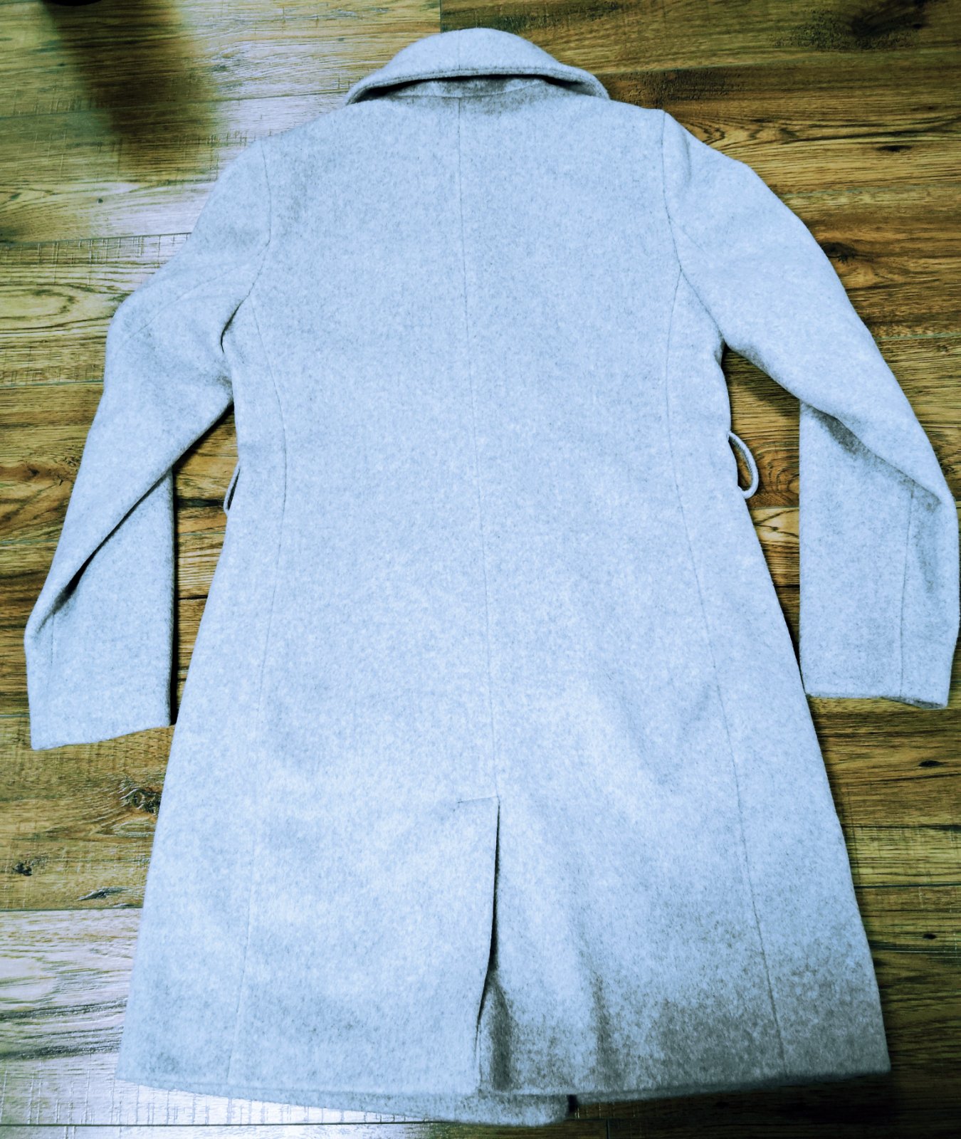 Svetlošedý kabát skôr na jeseň,jar,alebo teplejšiu zimu.Skoro nenosený ako nový.