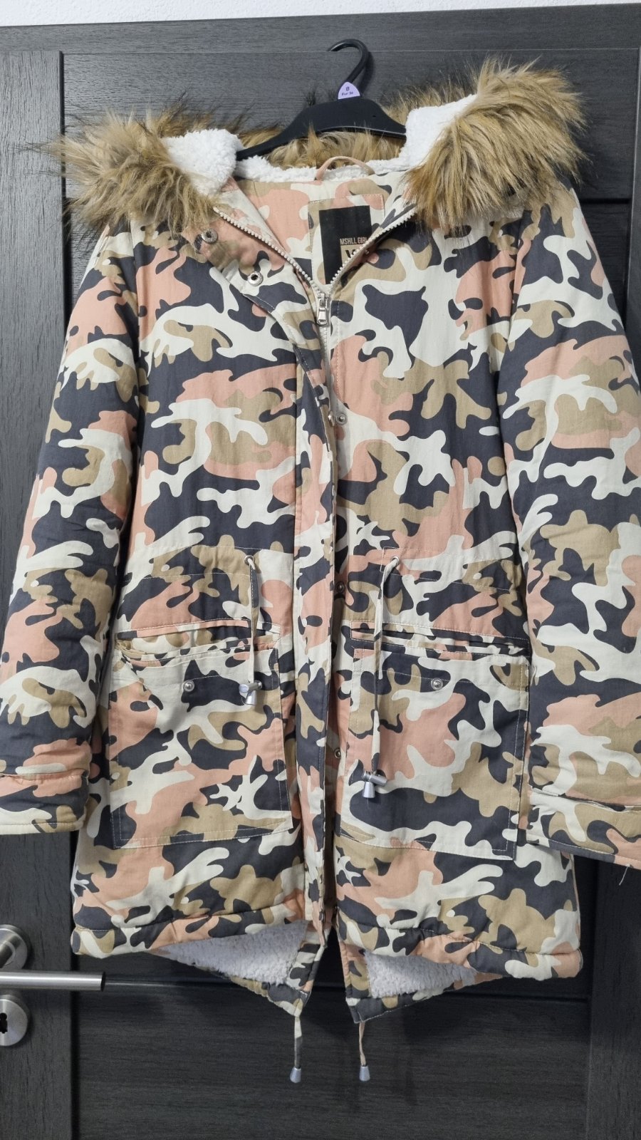 Pekná maskáčová vetrovka oteplená ovčie runo.