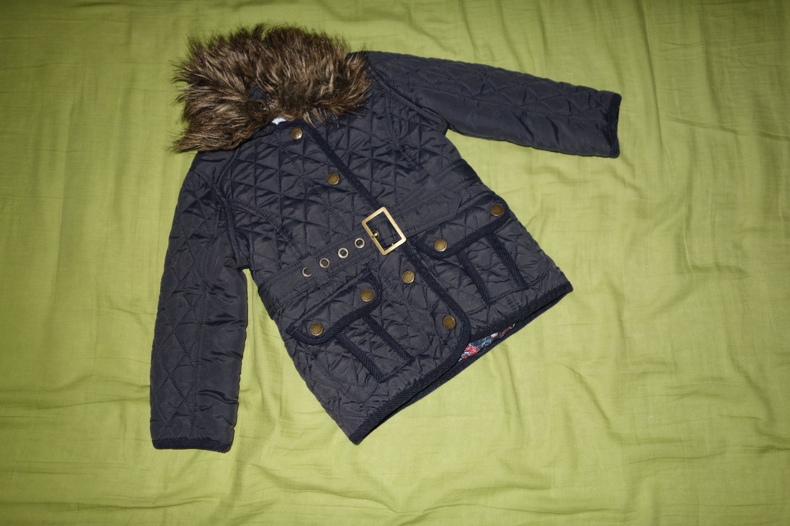 Krasna bundicka na prechod/miernu zimu vo velmi dobrom stave. Kozusinkovy golier sa da odopnut. Velkost je uvedena ako 104, ale je mensia.