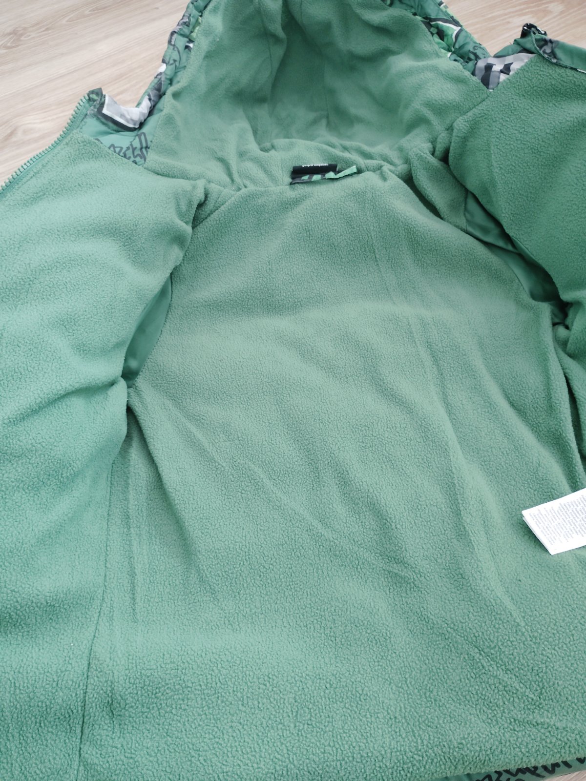 Veľmi tepla nosena bunda. Bohužiaľ suchý zips už neslúži, tak bud úplne odstrániť alebo vymeniť. Bunda sa zapína na zips + prekrytie zipsu suchým zipsom. Hore a dole sú cvoky, čiže suchý zips tam a...