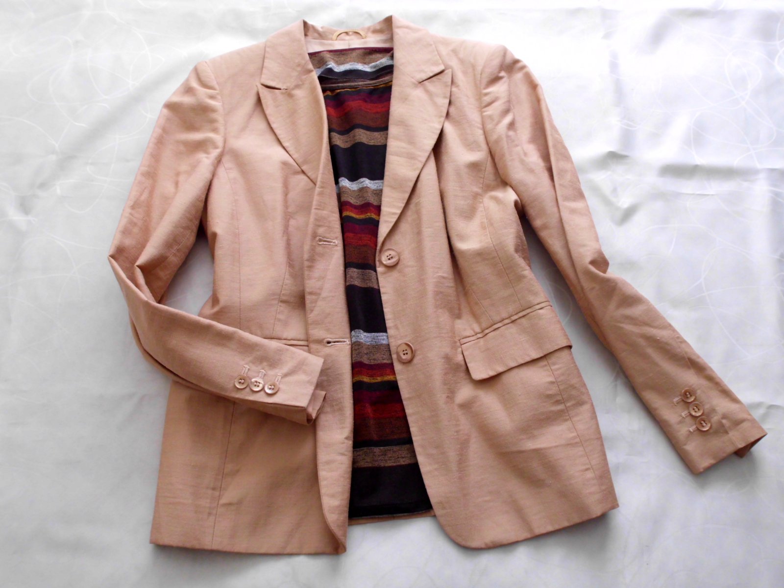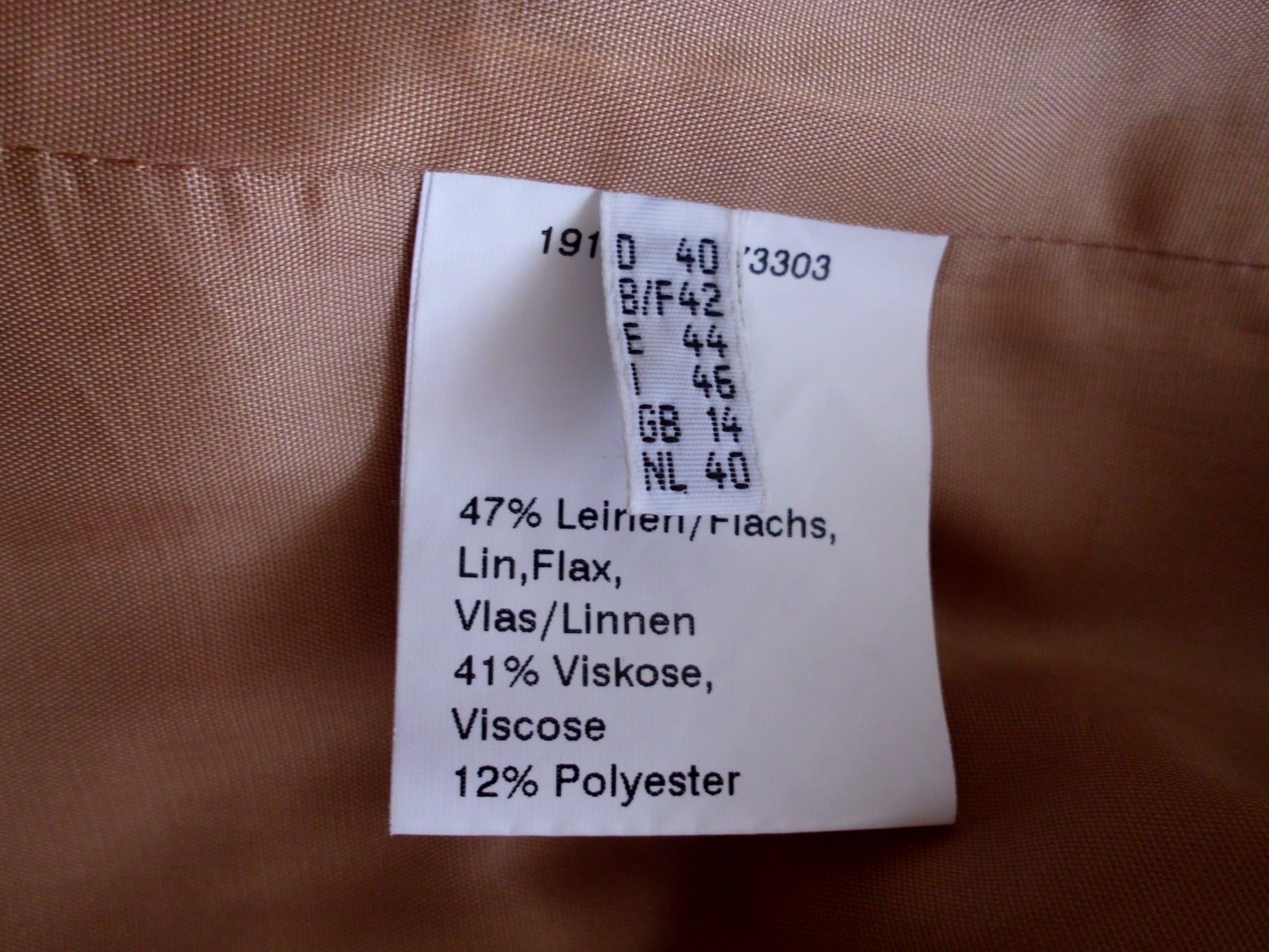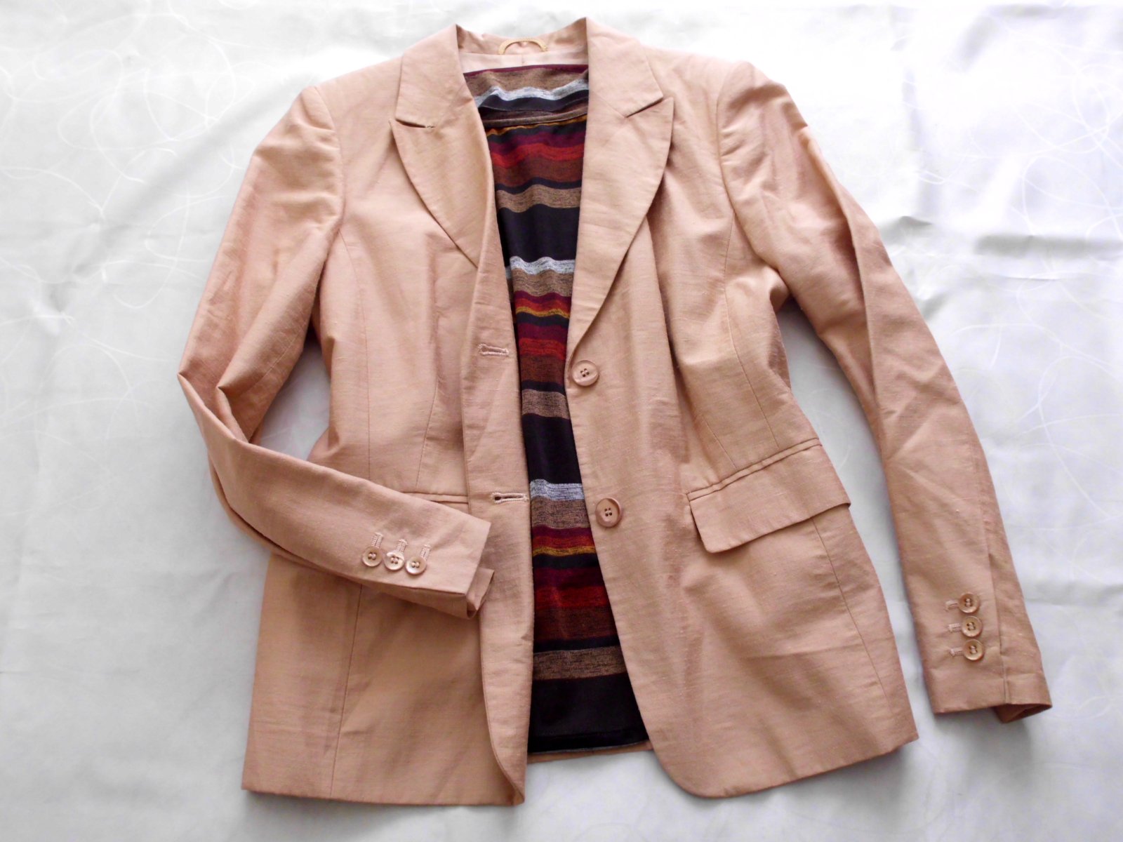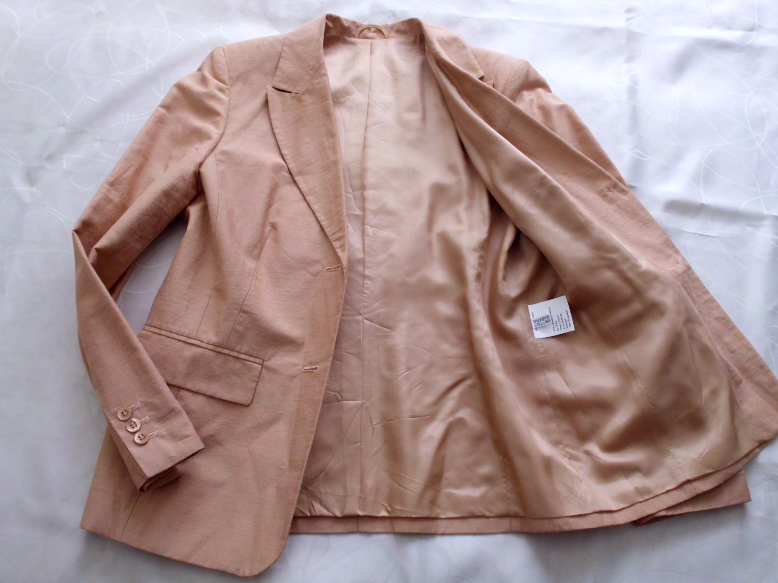 Predám dámske kvalitné sako s ľanom vel. M-L , dĺžka 66 cm, šírka 49 cm, rukáv 61 cm, celé podšité podšívkou , príjemný materiál , 2 vonkajšie vrecká , pekná bledohnedá do zlata farba , 2x krát oblečené, 100% stav
