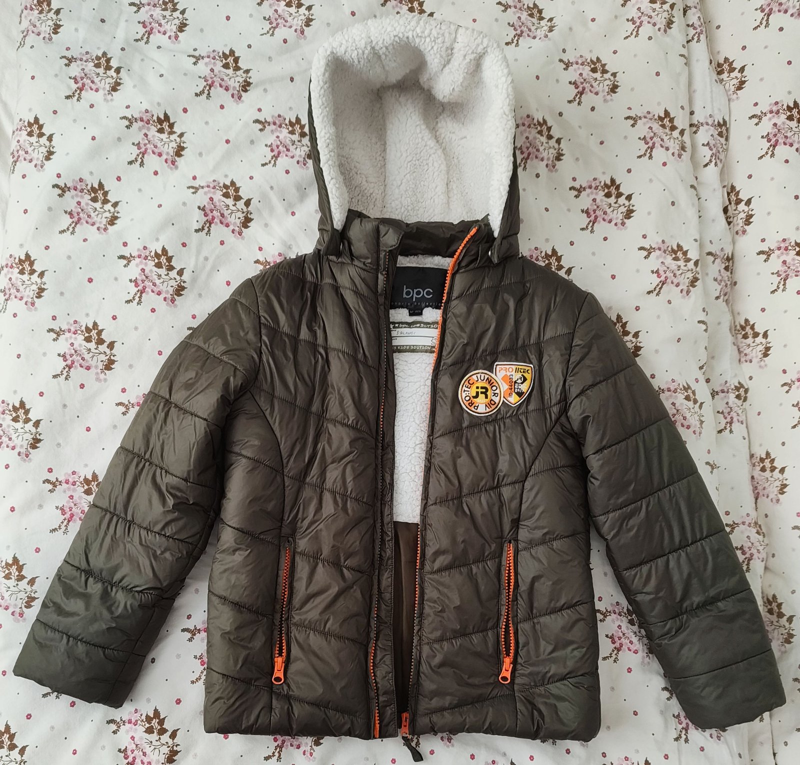 Zimna bunda, malo nosena, bez poskodeni. Odnimatelna kapucna.