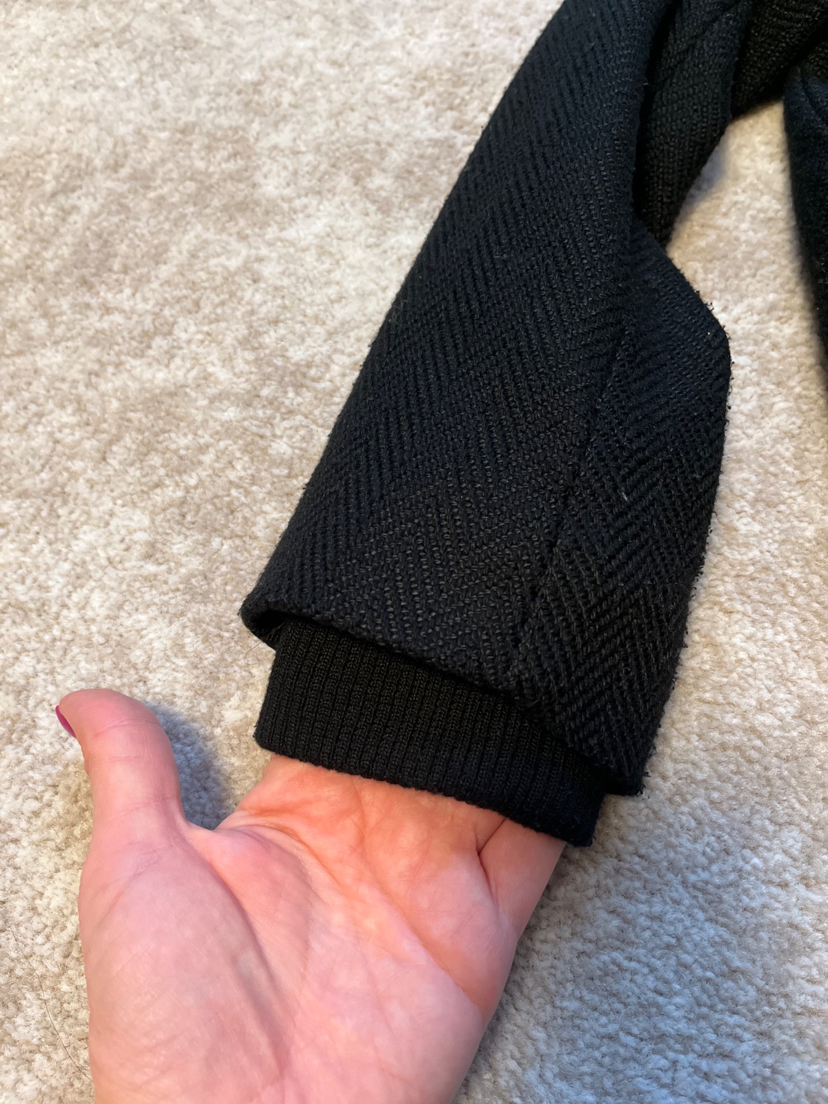 Prechodný čierny kabátik. Vhodný na jar/ jeseň. Nosený, veľmi dobrý stav. D 54 cm, š pod pazuchou 42 cm, rukáv od krku 57 cm