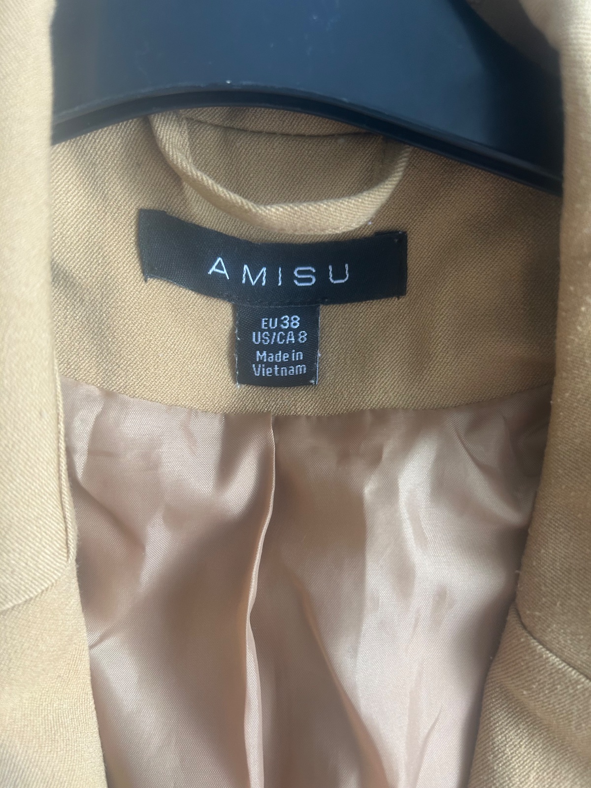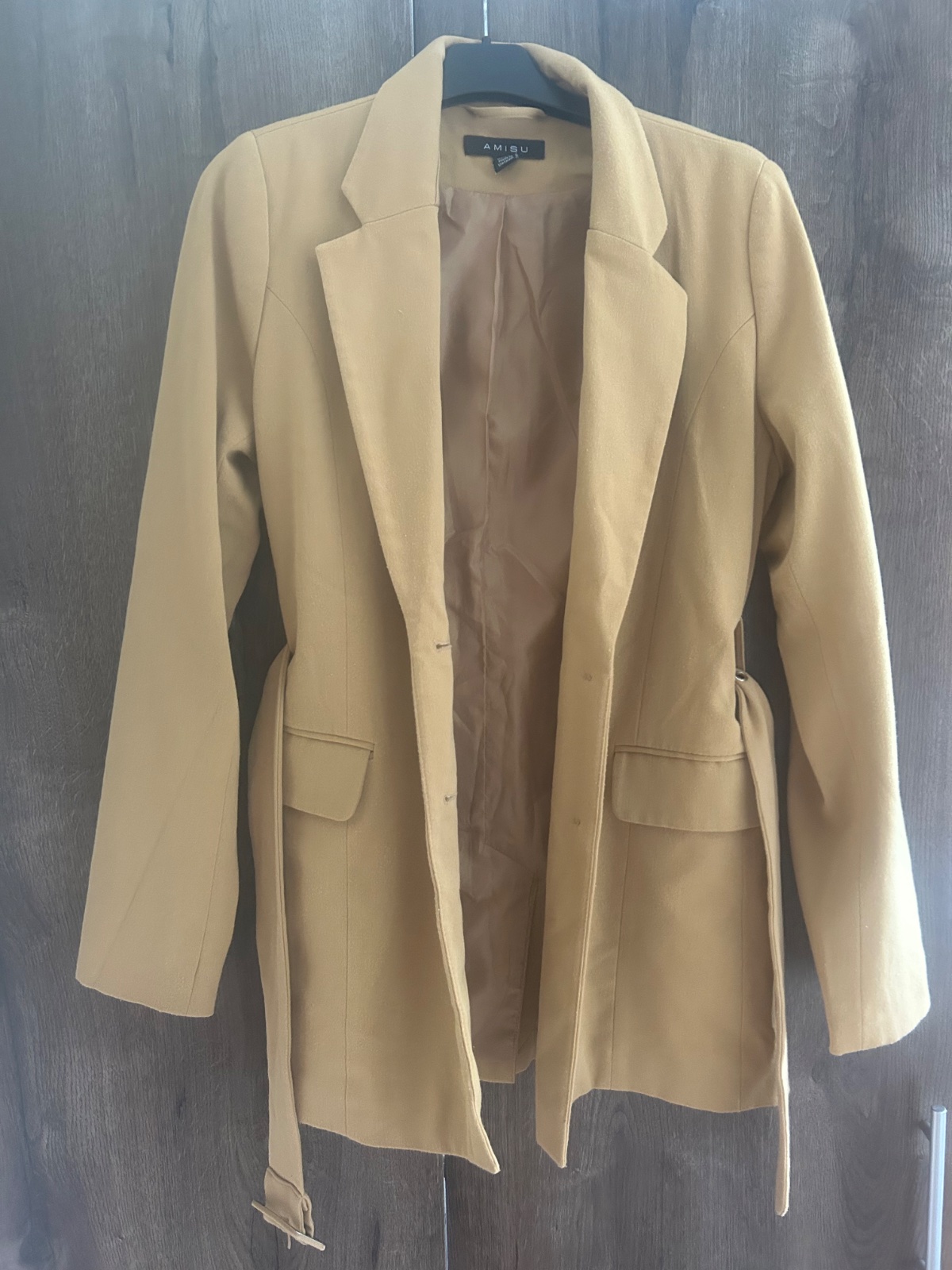 Damske dlhšie sako, nosené. Vidieť známky nosenia