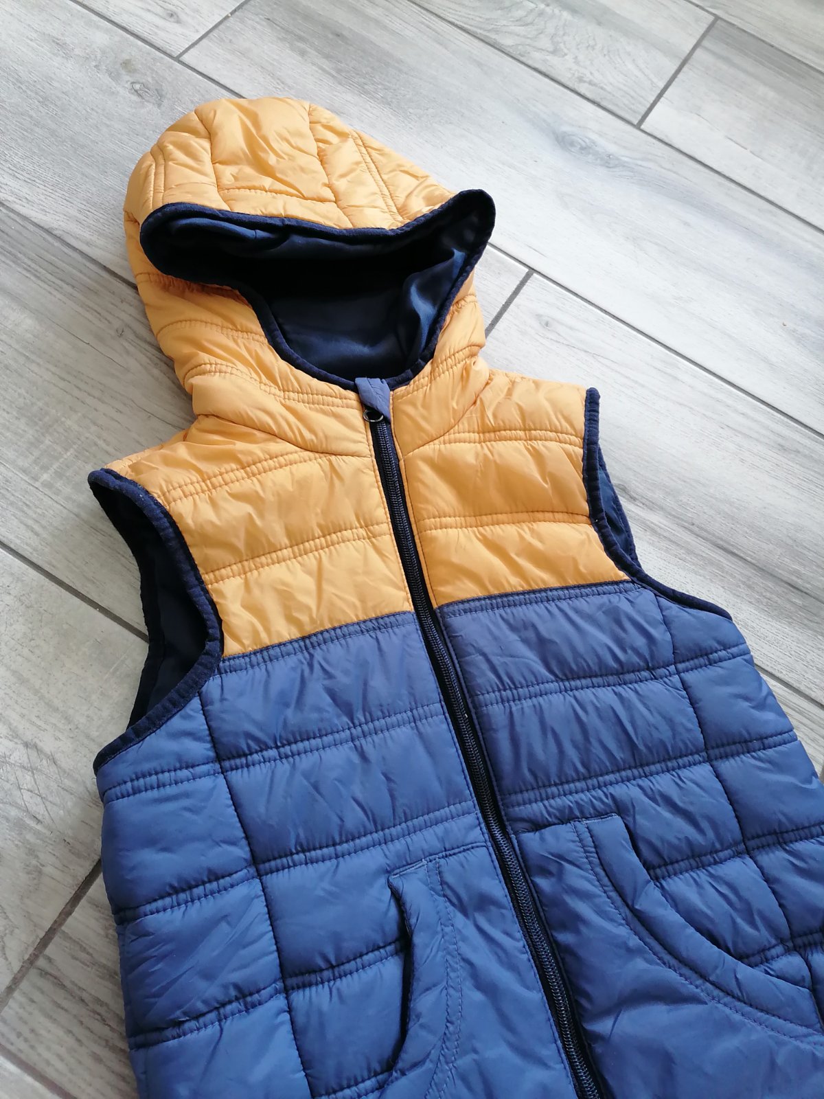 Ale celkom ju nezipsujem dole sa zips zasekava, potom ťažko znova nasadzuje. Tak sme ju nosili cez hlavu - obliekali. Kolo domu.