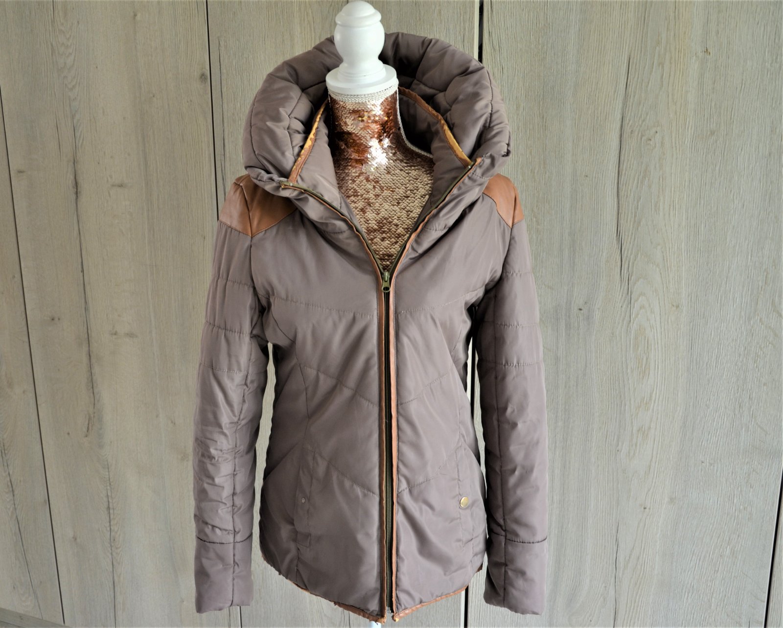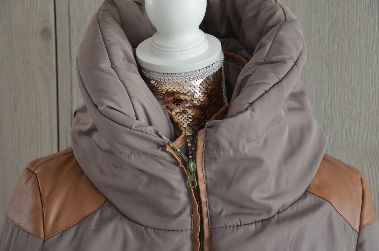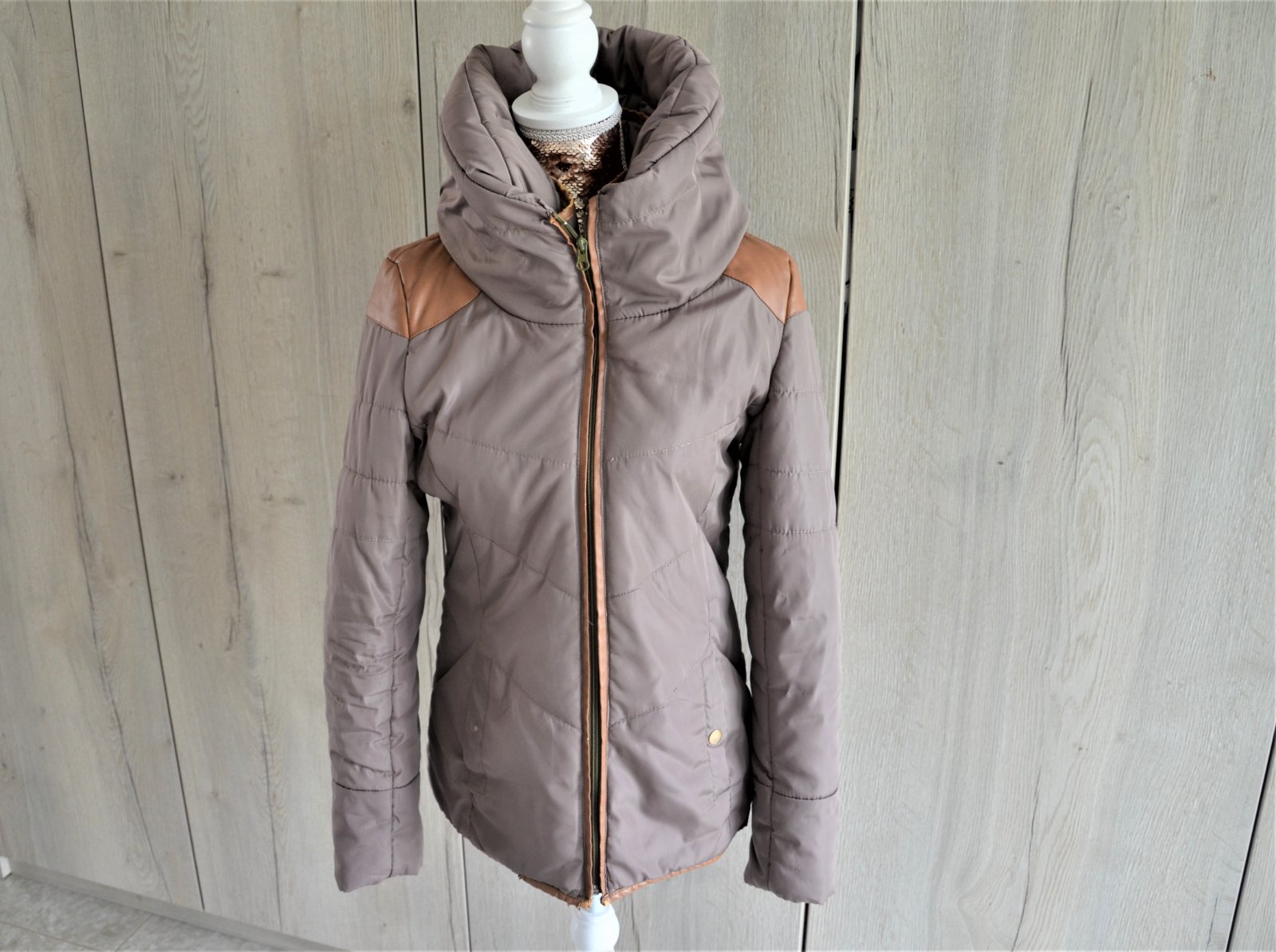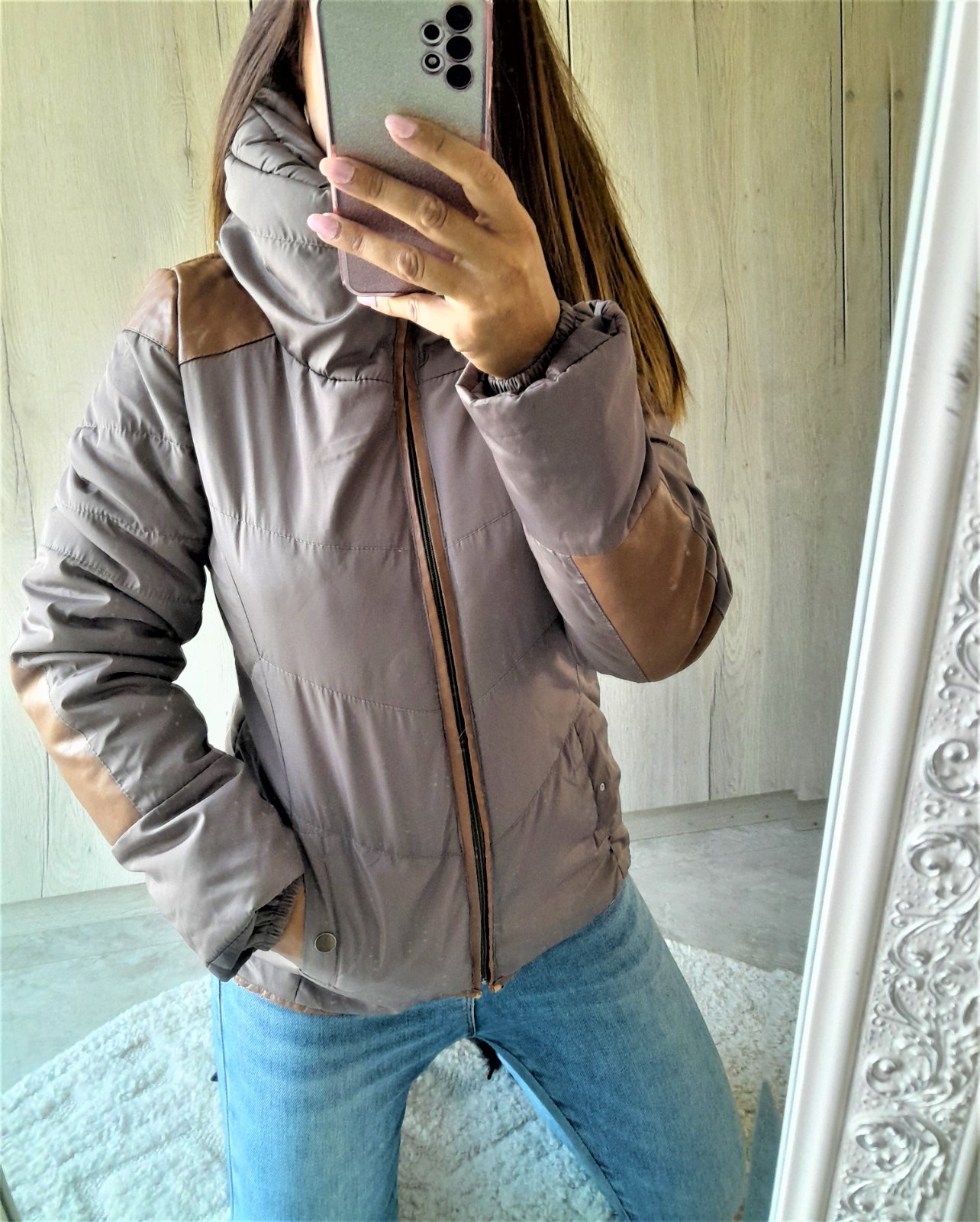 nevymieňam!!!nosená,zimná s vysokým golierom,krásna štýlová-pc-50 eur-predávam za zlomok ceny nakoľko sa koženka začala lúpať-viď foto,a chýba jeden cvok..dĺžka 66cm,šírka pod pazuchami 2x 49cm,dole 2x51cm,rukáv od ramena 62cm..kuk aj na iné moje inzeráty