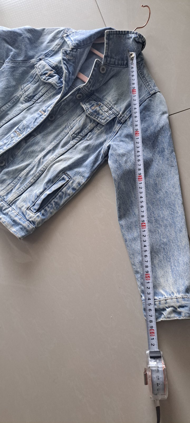 Predám v super stave riflovú bundu 134. Cena 13.50e a 1,50e doprava . Rozmery na fotkách