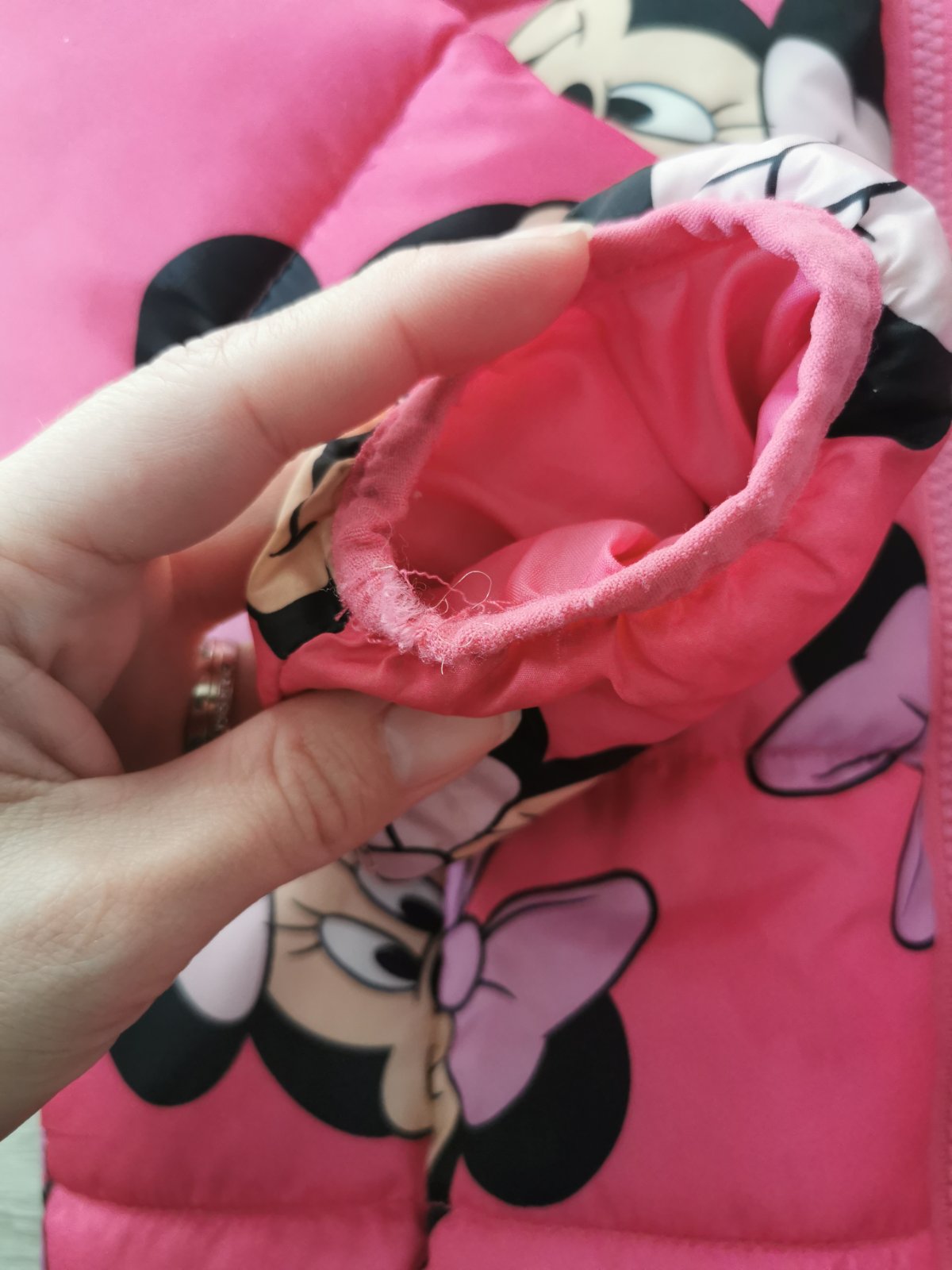 Prechodná bunda Minie, veľkosť 7-8rokov. Bunda má poškodenie na rukáve a pozaťahované, viď foto, pri nosení nevidno, bunda nie je vynosená. V