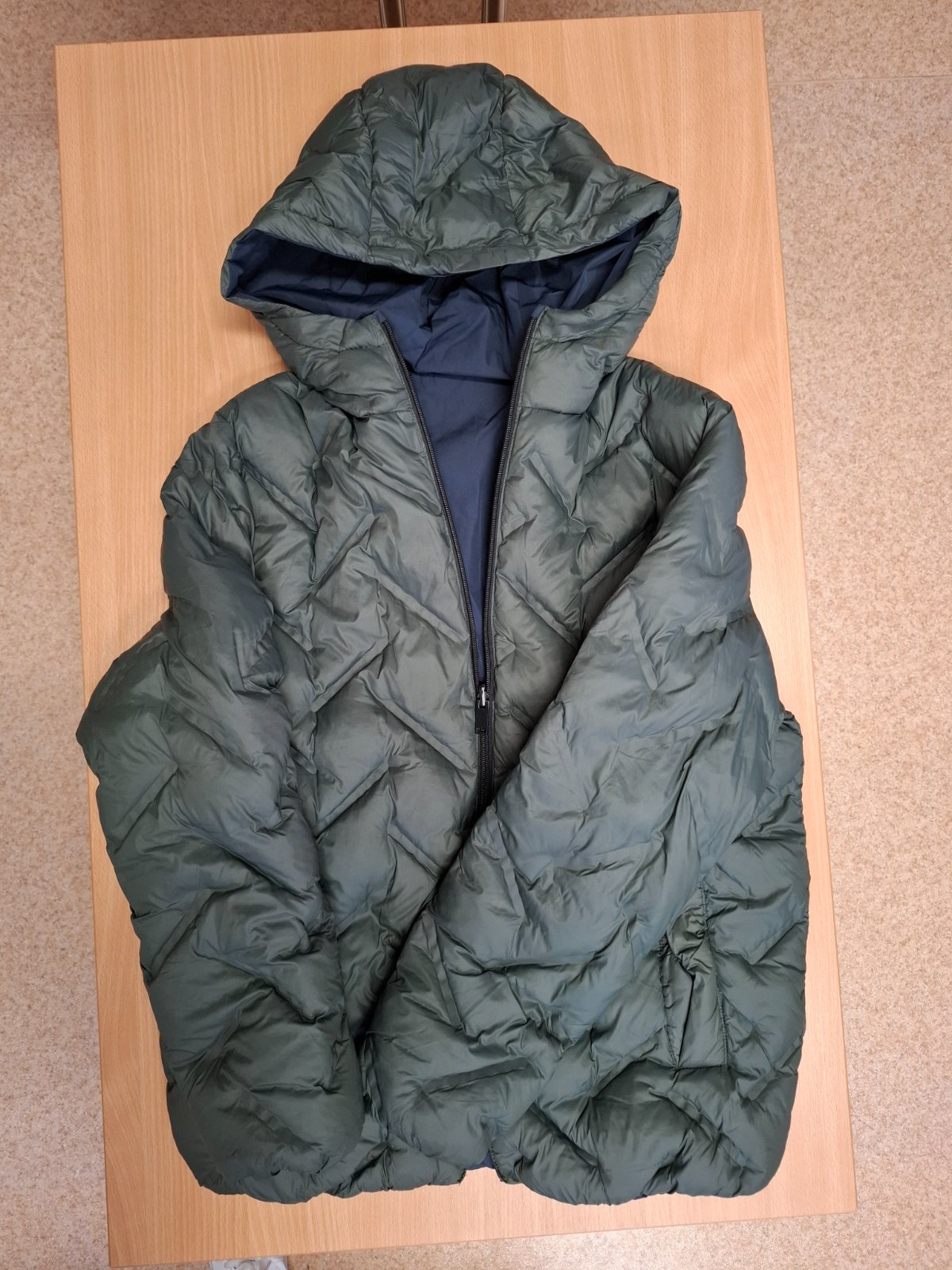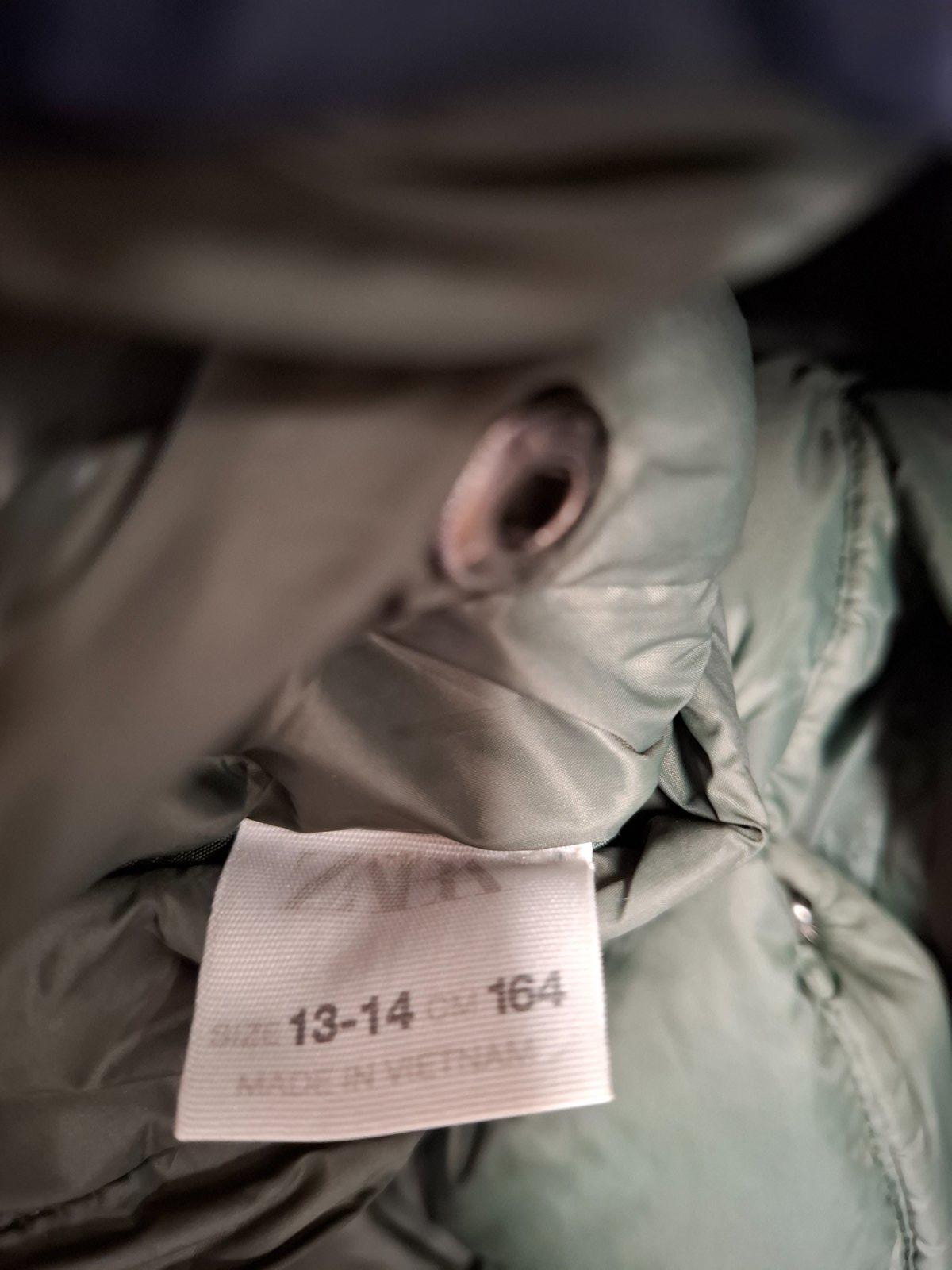 Zimna vatovana bunda Zara, malo nosena, ma hore na zipse vypadnute 2 zubky, ale stale zapina, vzadu na bolu jemne zatrhnute, nedostatky zohladnene v cene Rozmery sirka pod pazuchami 52 cm, dlzka vp...