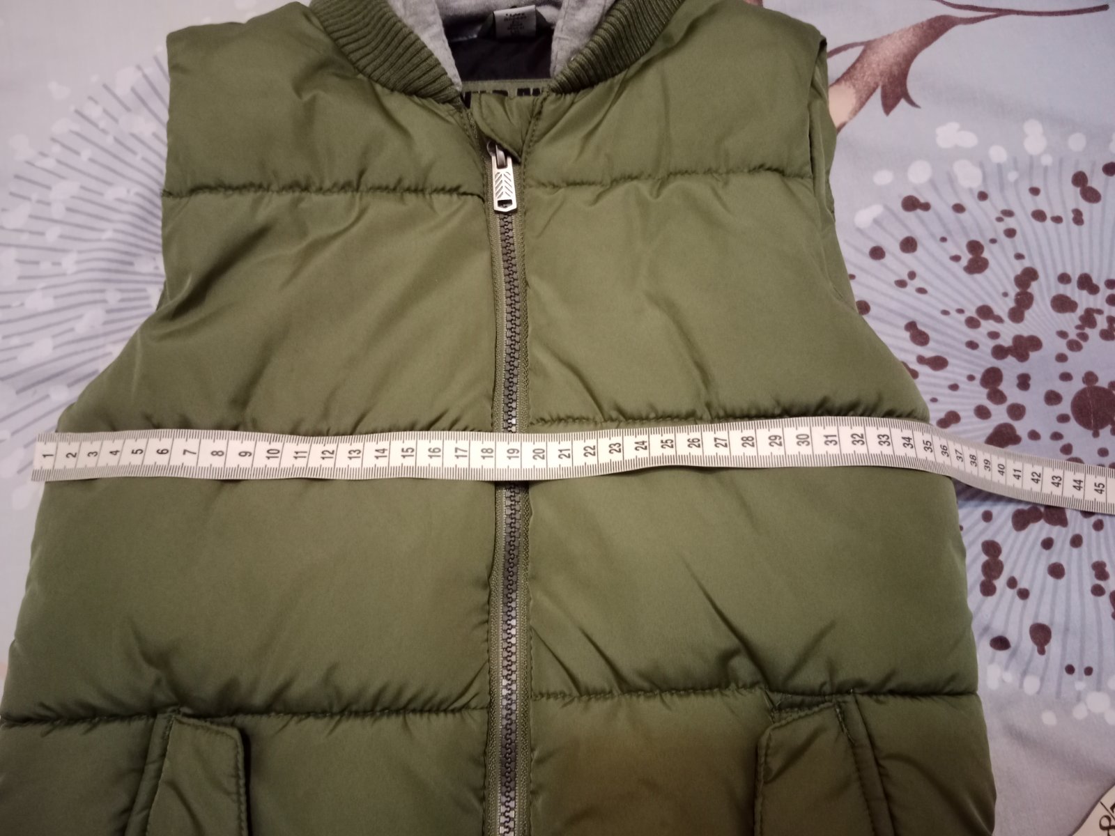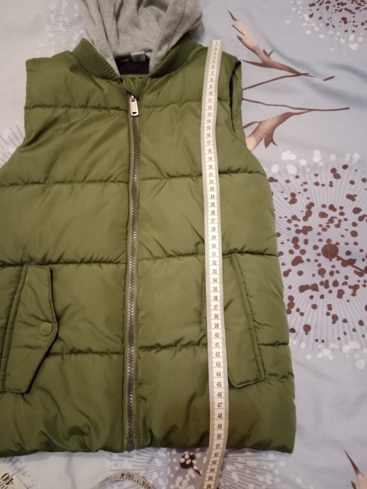 Predam uplne novu len odskusanu vestu. Celkova dlzka je 52 cm a sirka 41,5 cm /vesta je bez visacky/.