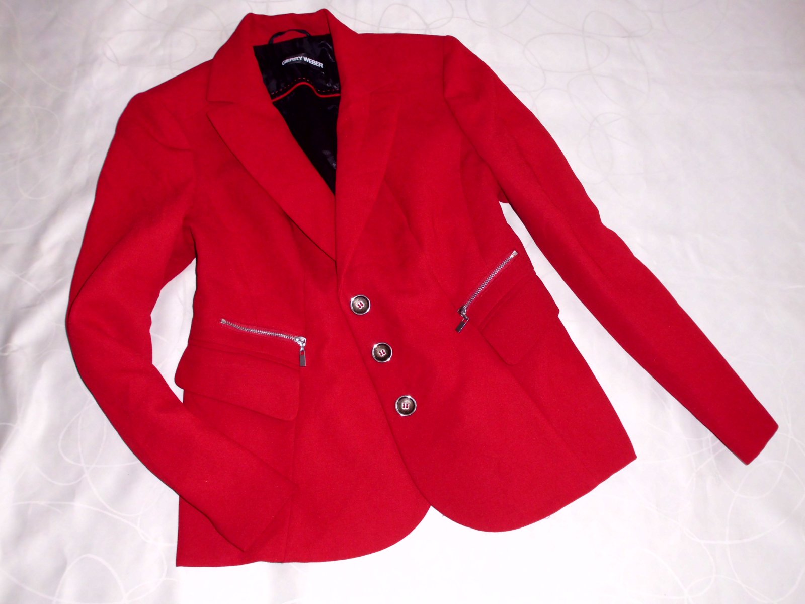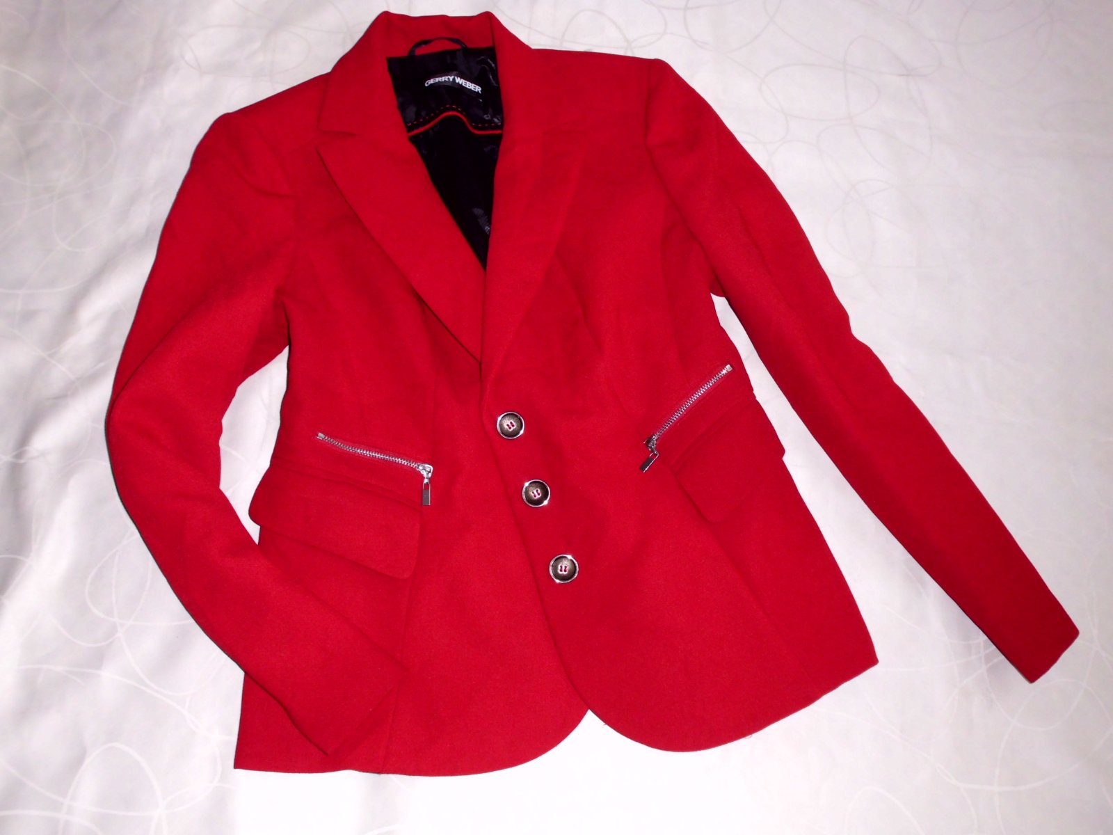 Predám dámske sako Gerry Weber vel. M , dĺžka 66 cm, šírka 50 cm, rukáv 63 cm, celé podšité podšívkou , 2 vonkajšie vrecká, tmavočervená do bordova farba ,raz oblečené, 100 % stav