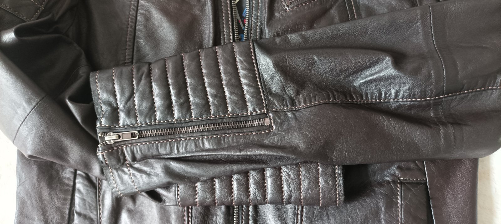 Predám nepoužitú hnedú koženú bundu značky Steffel Krásne ukáže na postave Veľkosť 42 /sadne na M,L/ Zapínanie na zips Zips je v dvoch radoch takže podľa potreby si zapnete kde potrebujete a tým sa...
