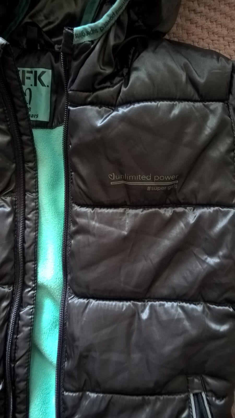 zateplená bunda veľ 128 zn. Y.F.K bez poškodení kapuca napevno zapínanie na zips 2 bočné vrecká na zips