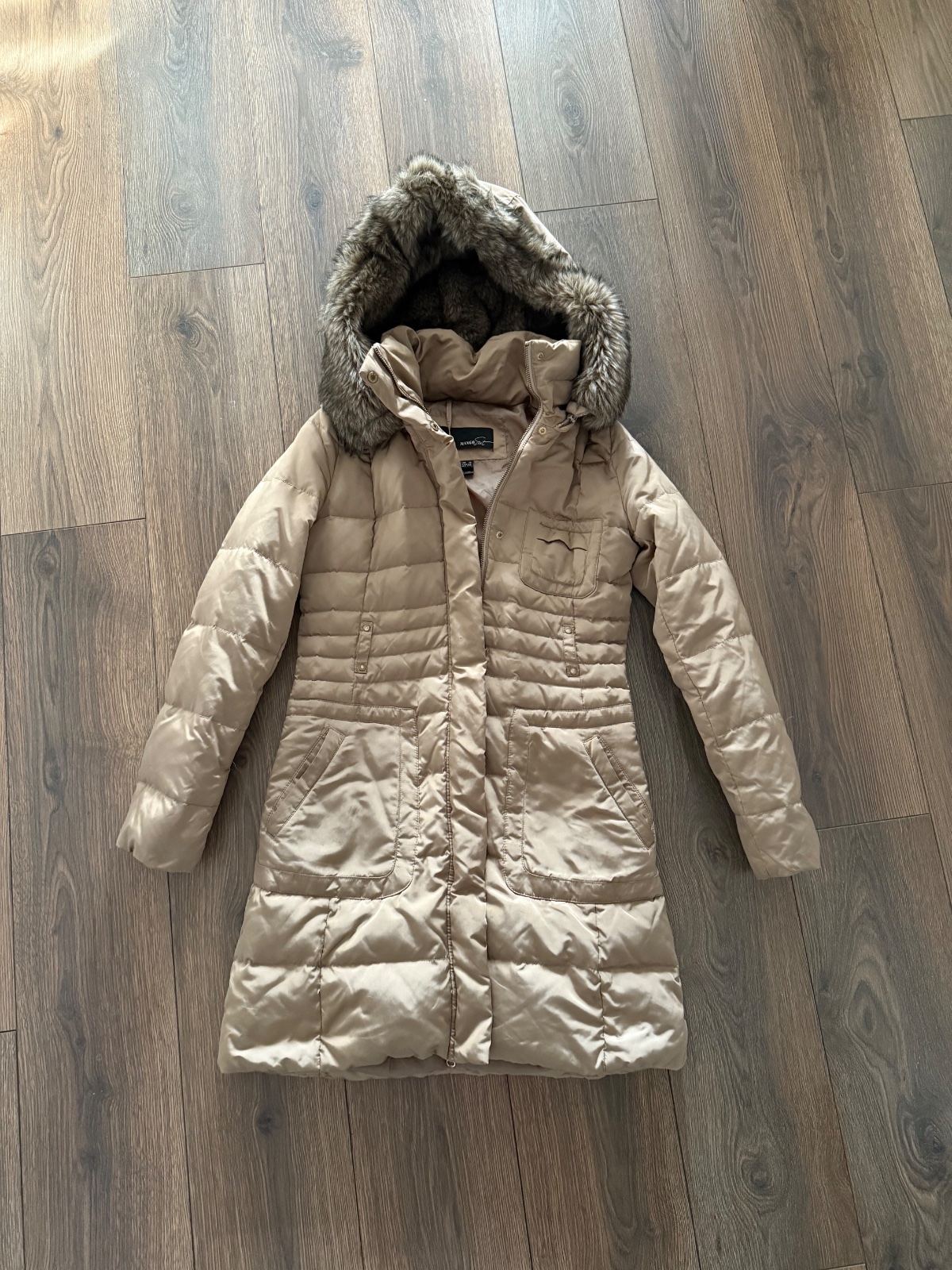 Bunda na zips a cvoky, vpredu dve vrecká, v pási mierne zúžená.