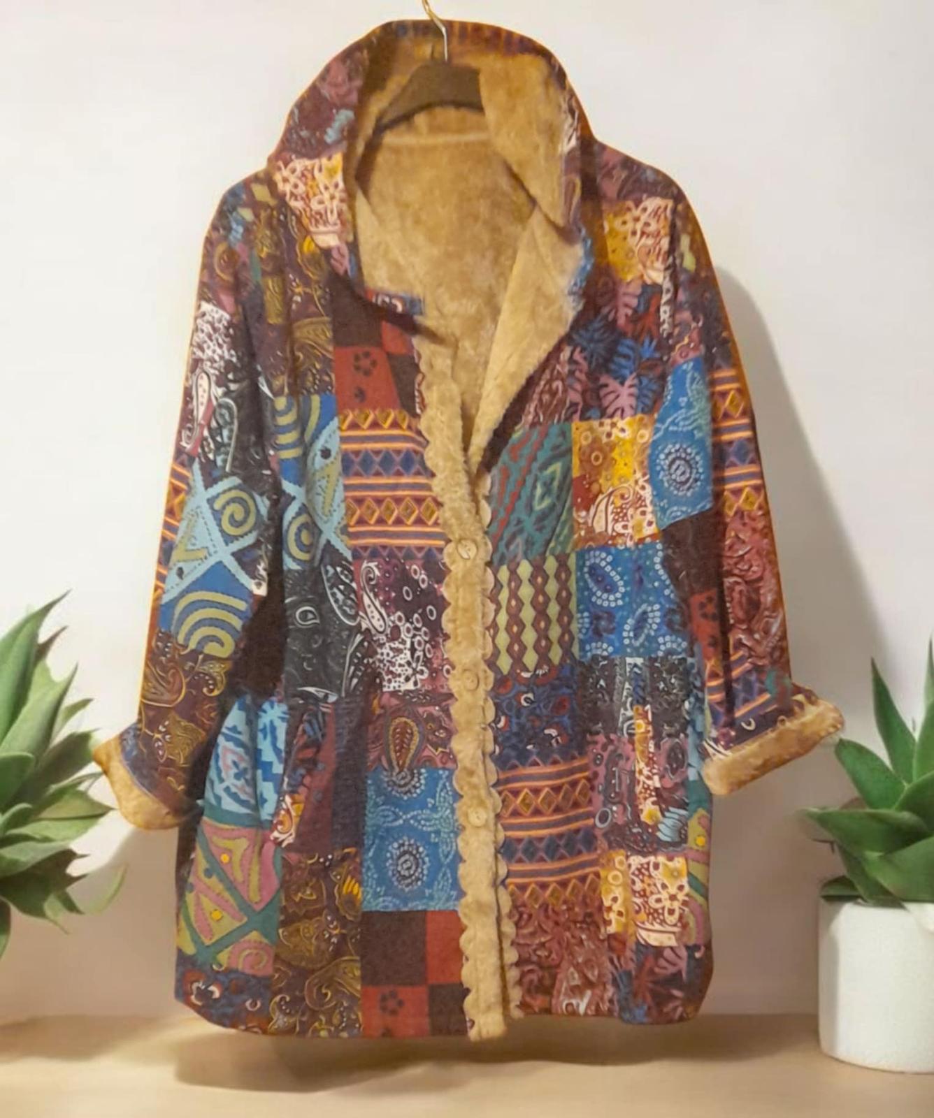 patchwork vzor,oblečená raz,už mi je to veľké,je to tenšia látka,ale oteplená,preto skôr na jar a jesen, prípadne teplejšiu zimu