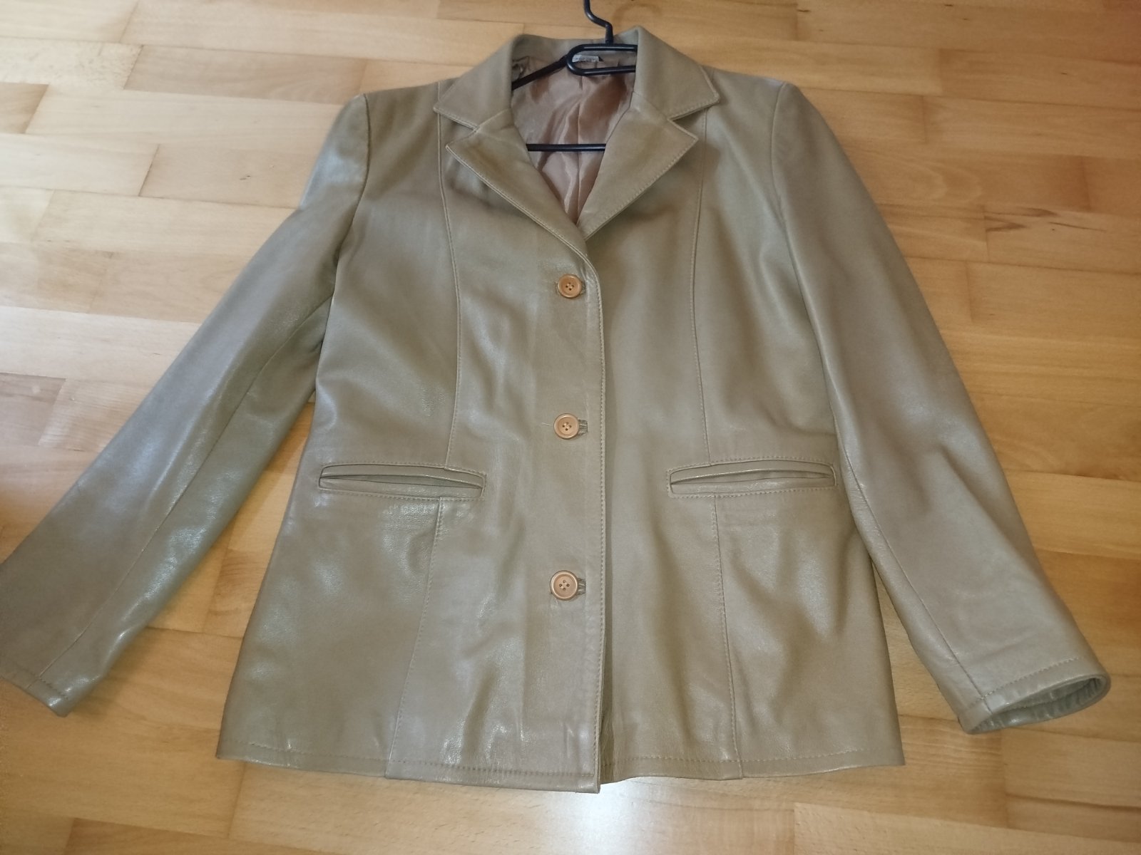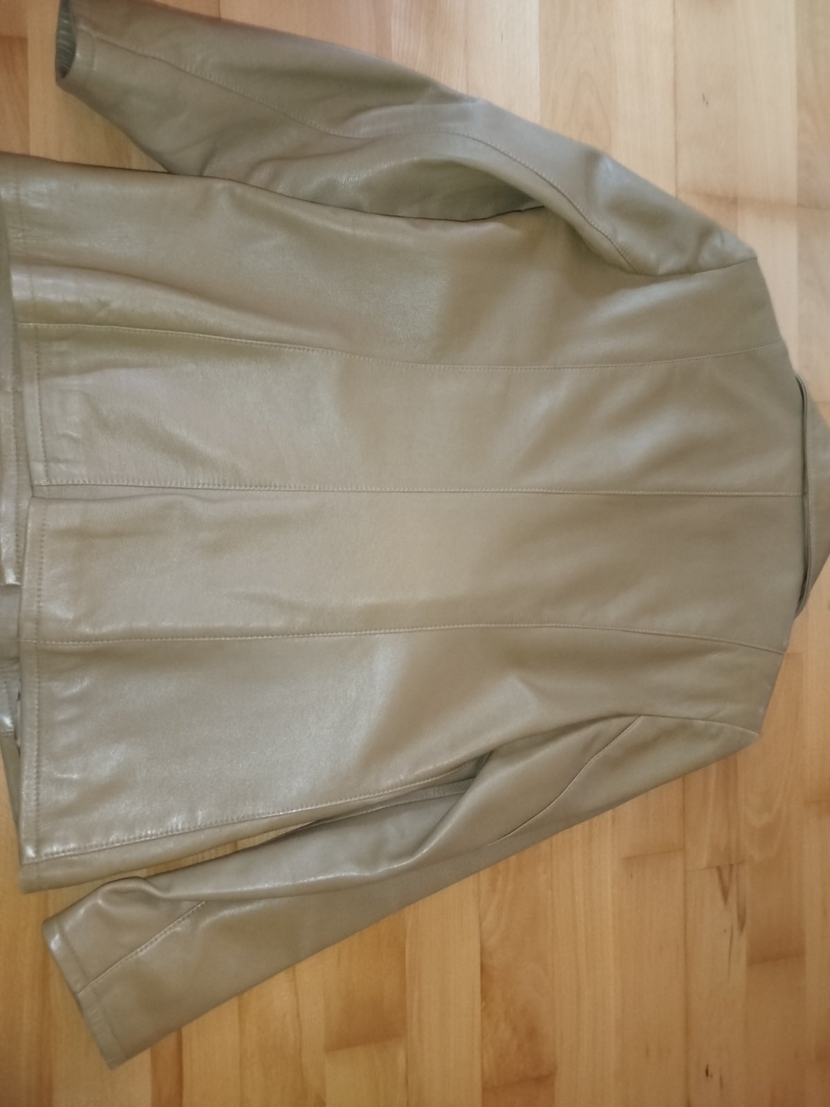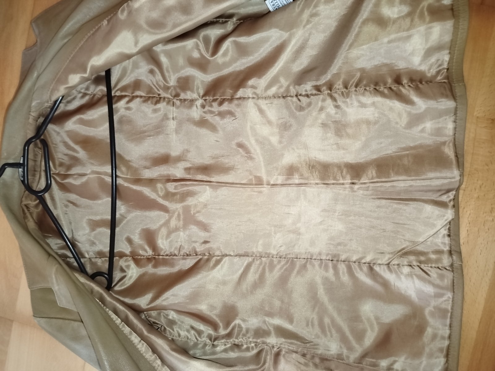 Svetlo-béžový tenký kabátik, veľ. L, zapínanie na gombíky, podšitý, 2 predné vrecká na zips. Málo nosený, veľmi dobrý stav.