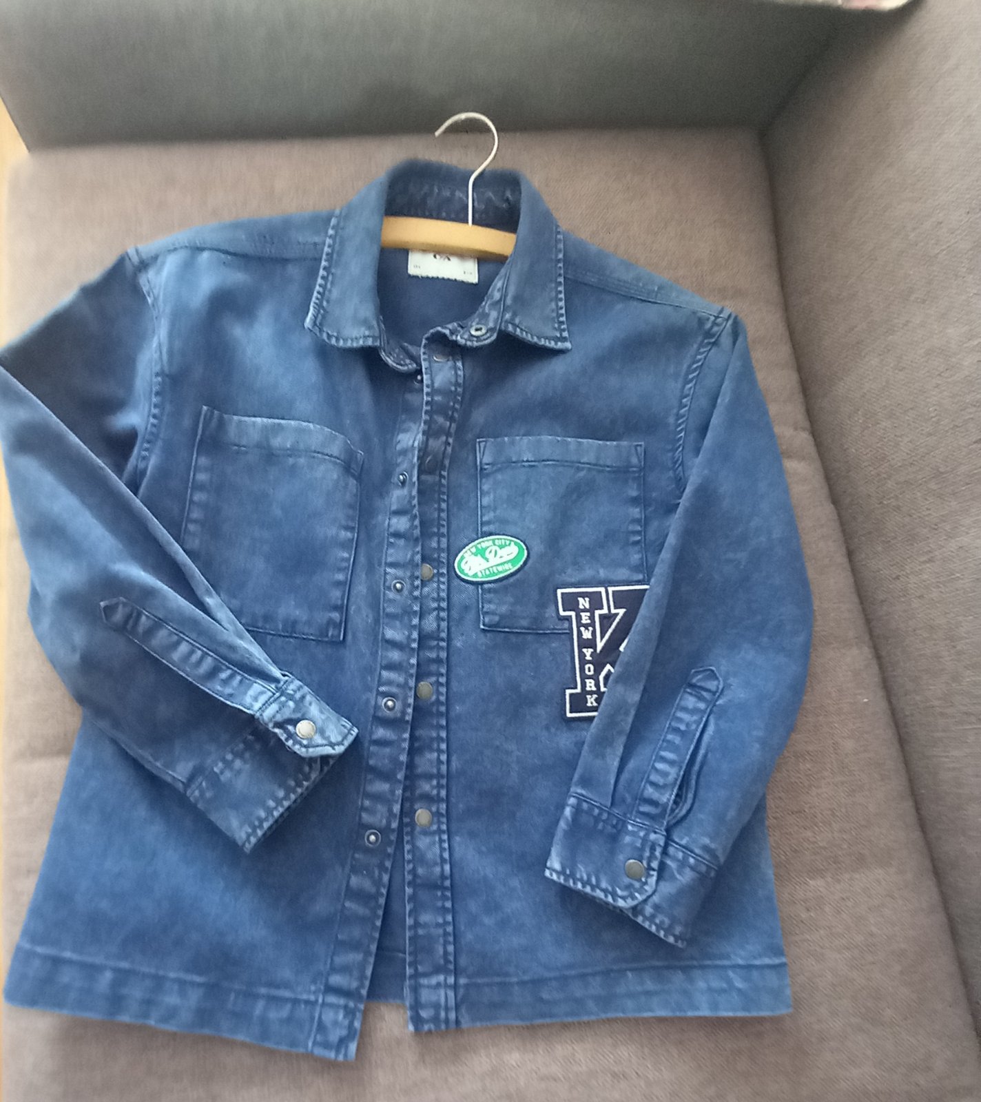Kvalitná riflová bunda, zapínanie na gombíky, 100% bavlna, super stav. prsia 63 cm spodok 62 cm dĺžka 71 cm rukáv od goliera 85 cm dš 10