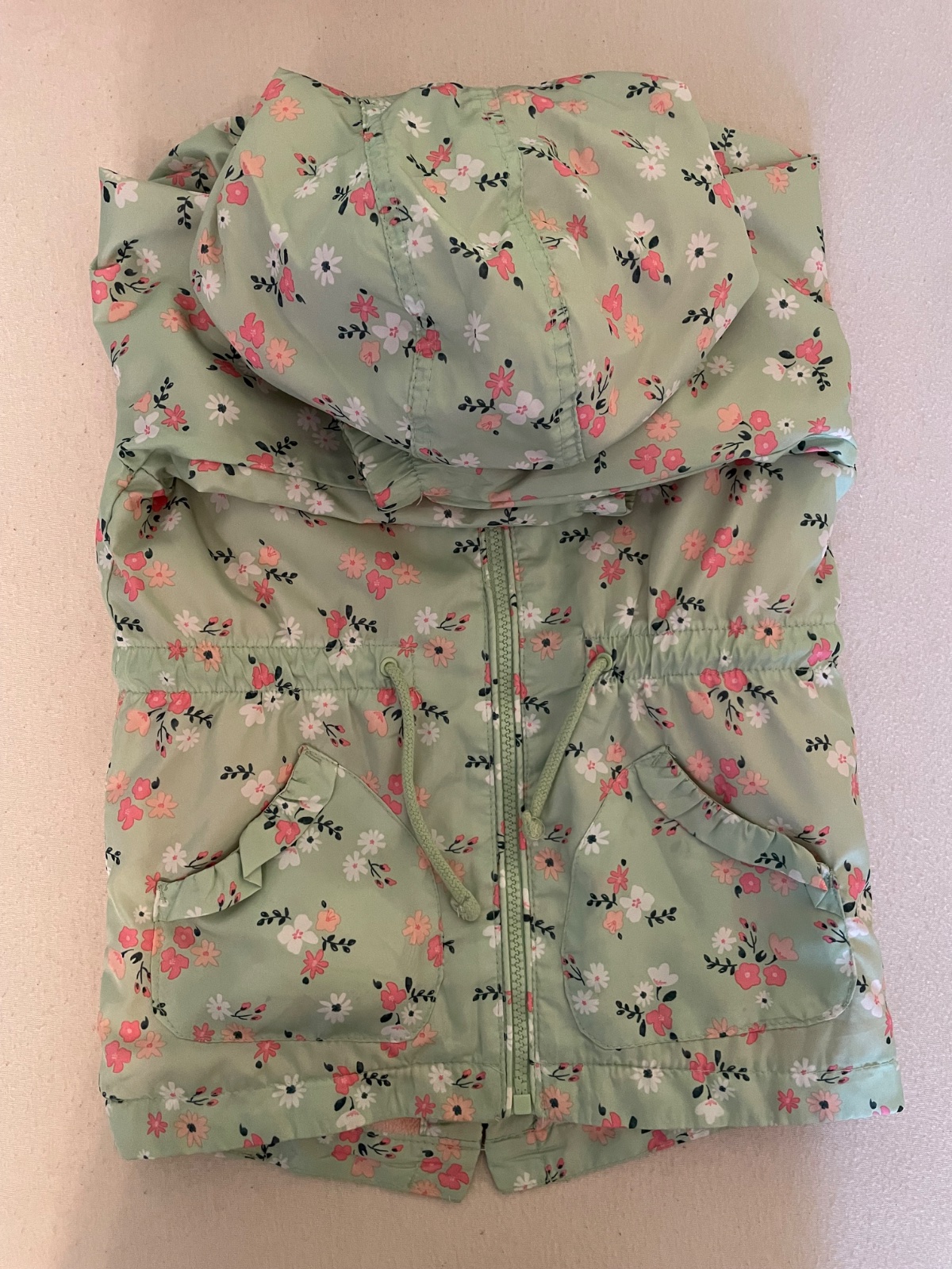 Predám krásnu prechodnú bundičku, využili sme ju od veľkosti 98 po 116. Nerozumiem tomu, ale rástla s nami :) Je výraznej bledozelenej farby a ružovými motýlikmi a kapucňou. Má 2 vačky na zips, ru...