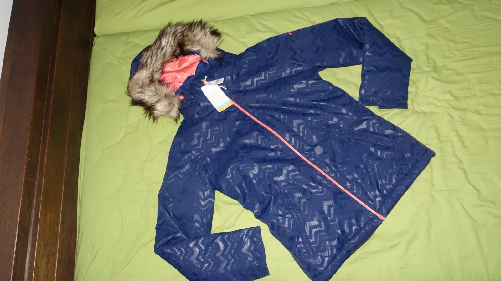 Krasna zimna bundicka- nova, s visackami. Kapucna i kozusinka na nej sa daju odopnut. Je uzasne prepracovana- original, samozrejme. Vodny stlpec 10K.