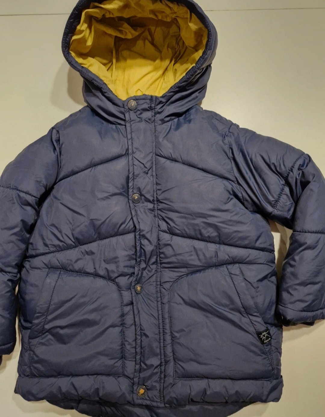 na 4-5 rokov,super stav,vhodná aj na jeseň aj zimu,je podšitá flanelom,má odopínateľnú vnútornú kožušinkovú vestu,jemne vatovaná,naša obľúbená,dl.od pleca 43 cm,š.38 cm,rukáv od krku 47 cm