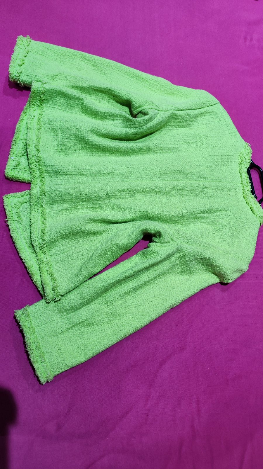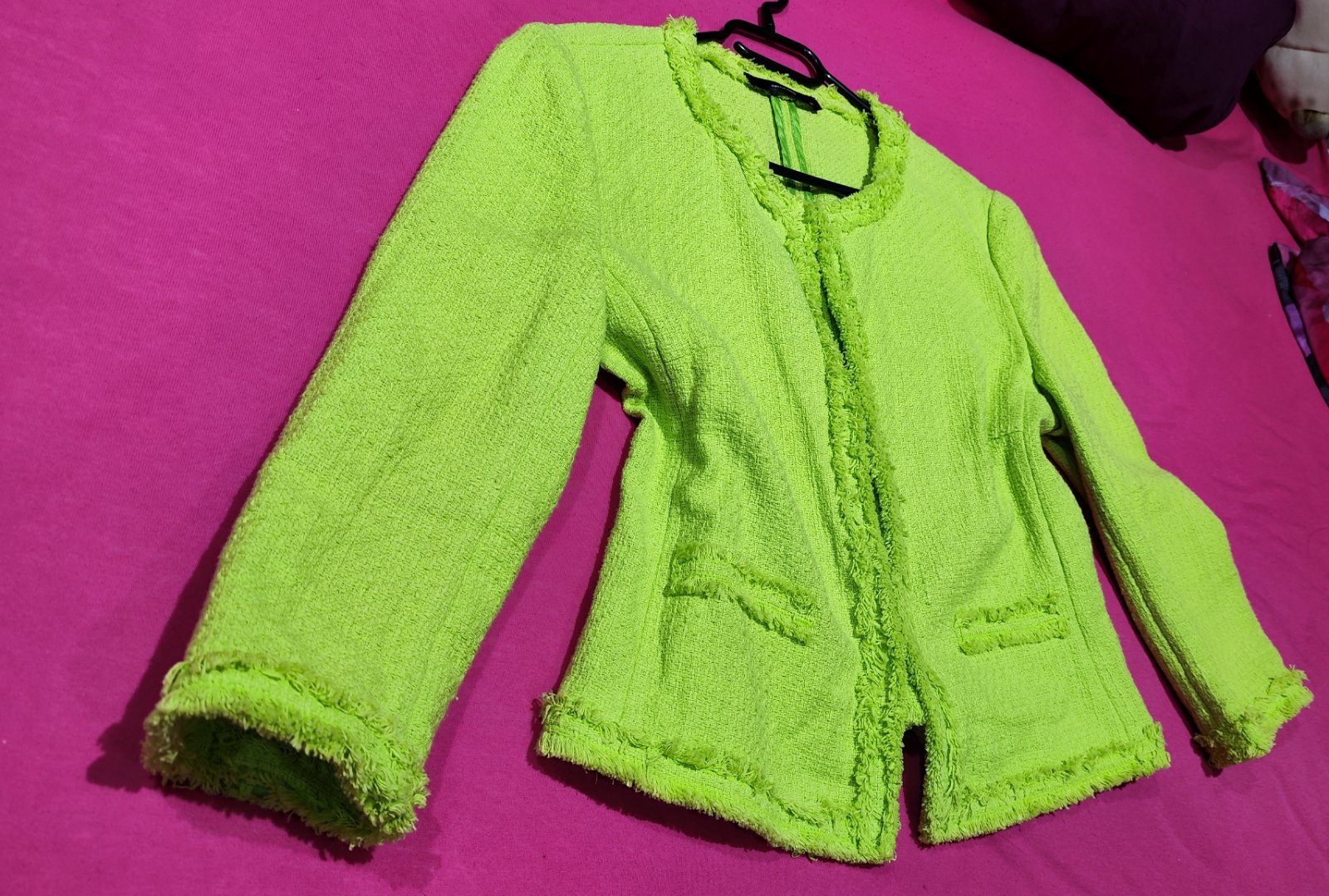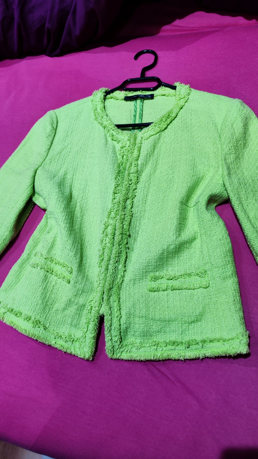 Sako je zaujímavej zelenej farby, nešlo mi to dobre odfotiť tak som to odfotila na dvoch rôznych svetlách.