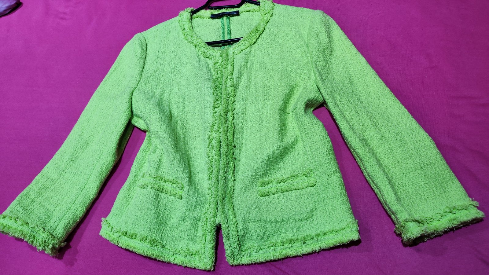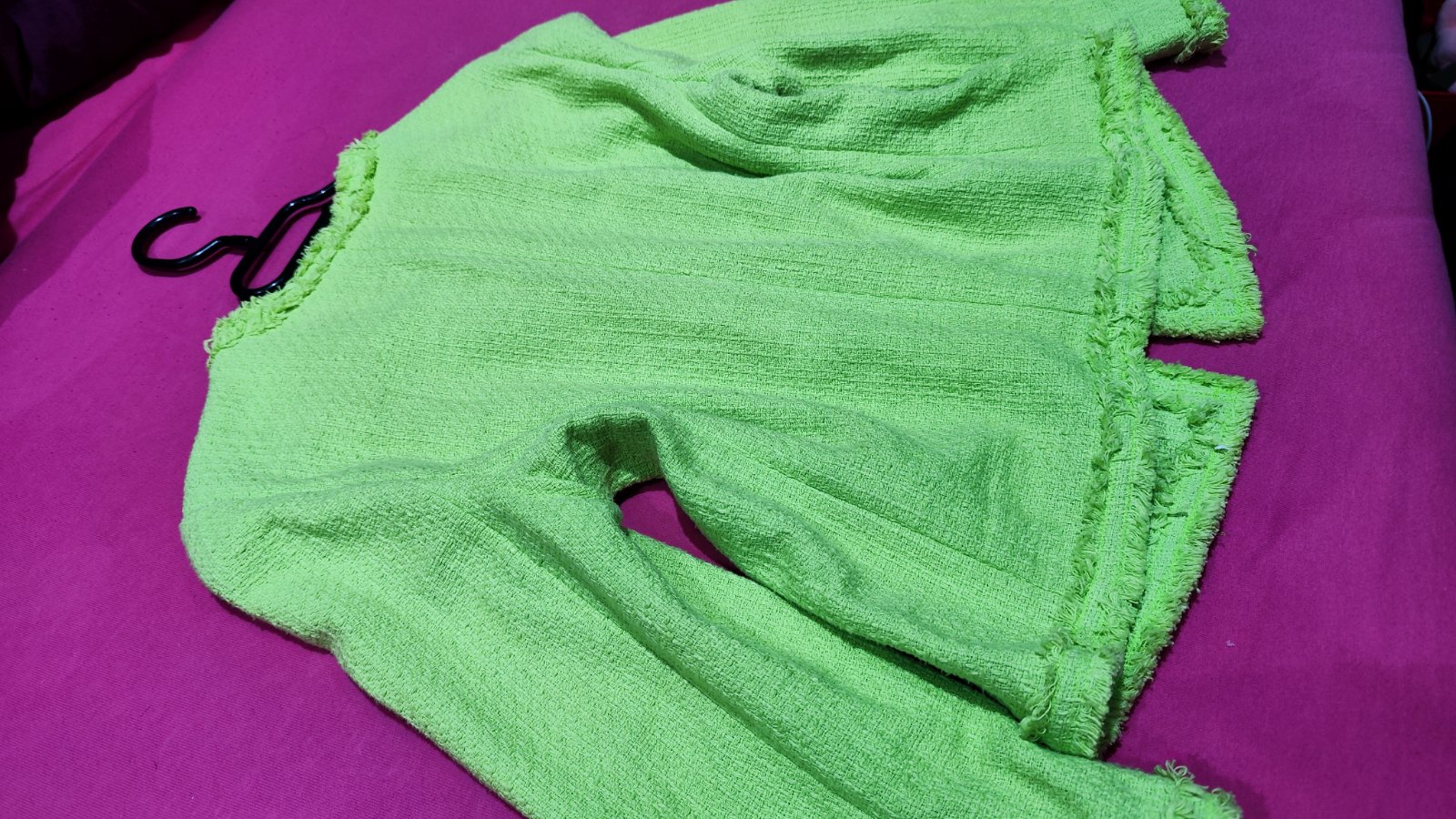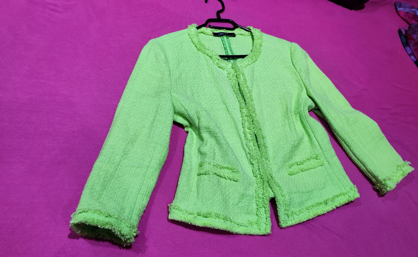 Sako je zaujímavej zelenej farby, nešlo mi to dobre odfotiť tak som to odfotila na dvoch rôznych svetlách.