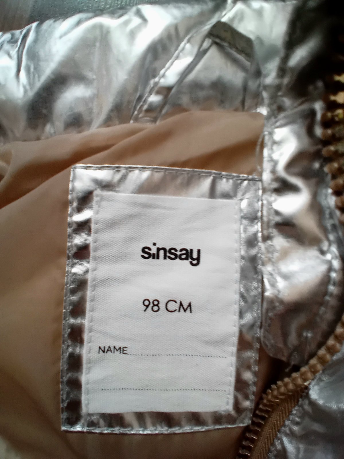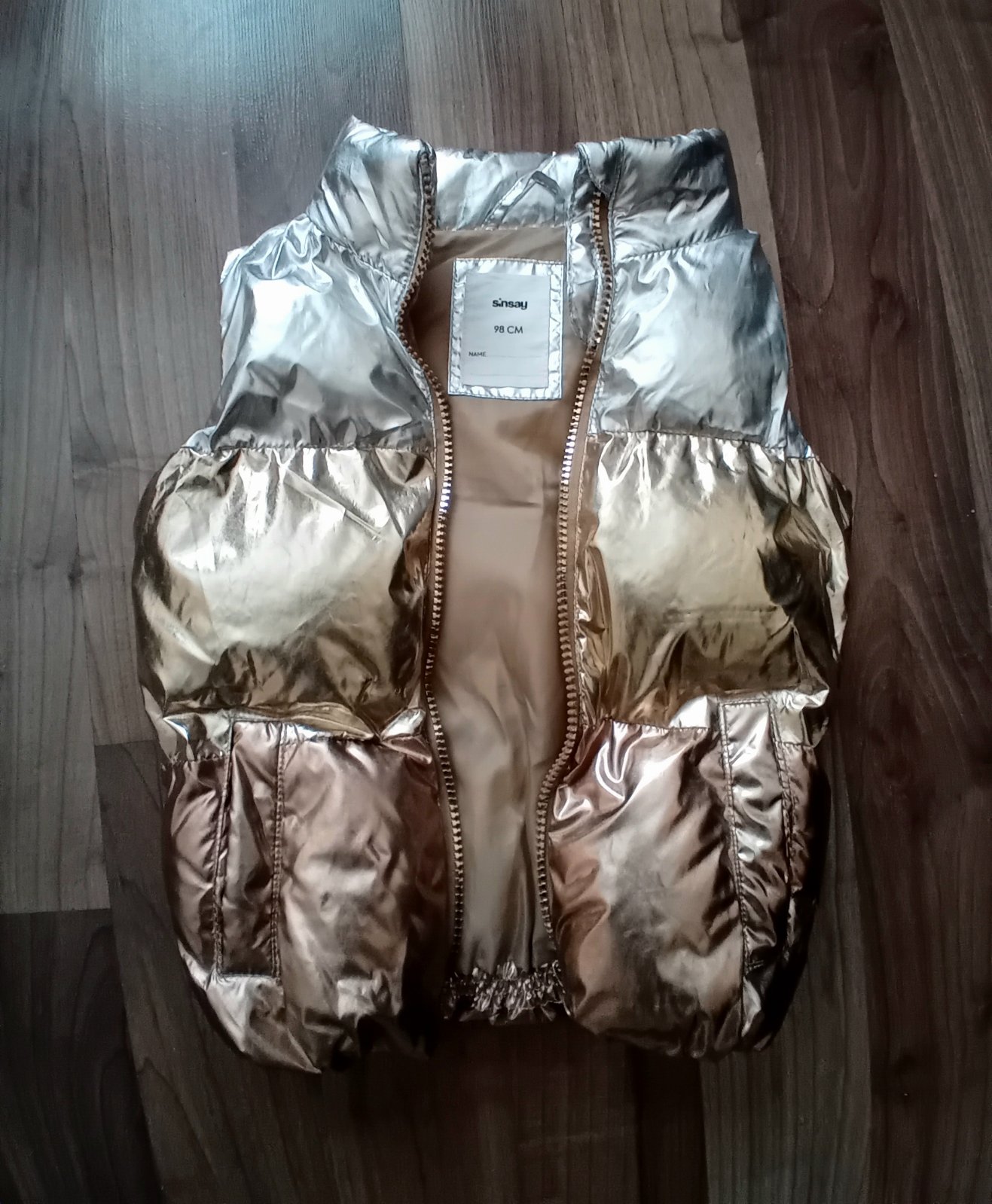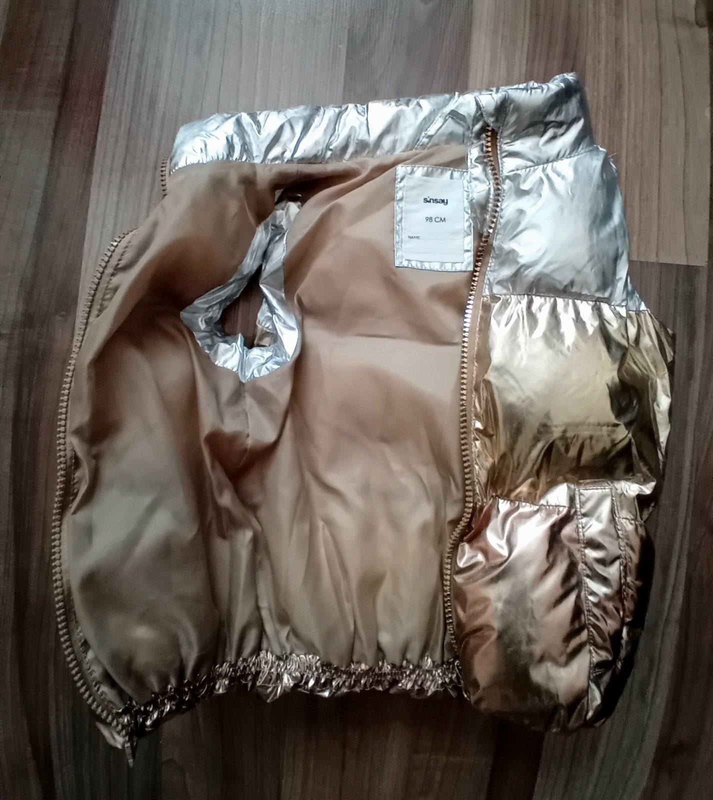 Uzasna vesticka, v ktorej bude vasa princezna neprehliadnutelna! Kombinacia farieb strieborna, zlata, medena. Vesticka ma aj vacky. Je malinko nosena. Ako nova. Ziadne zatrhnutia. Zips funkcny.