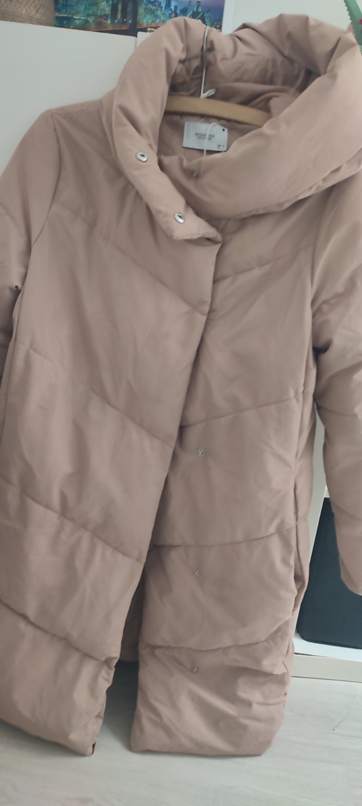 Dámska zimná vetrovka. Zaujímavá hnedá (khaki) farba. Zips + zapínanie na cvoky (fotka). Vo výbornom stave, bez poškodenia. Dĺžka 72cm, šírka pod pazuchami 50-51cm x2. Veľkosť 34 - vhodná pre XS/S.