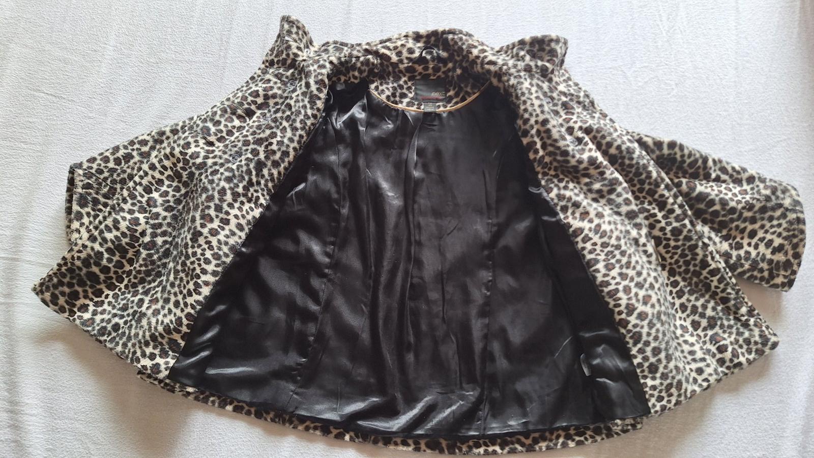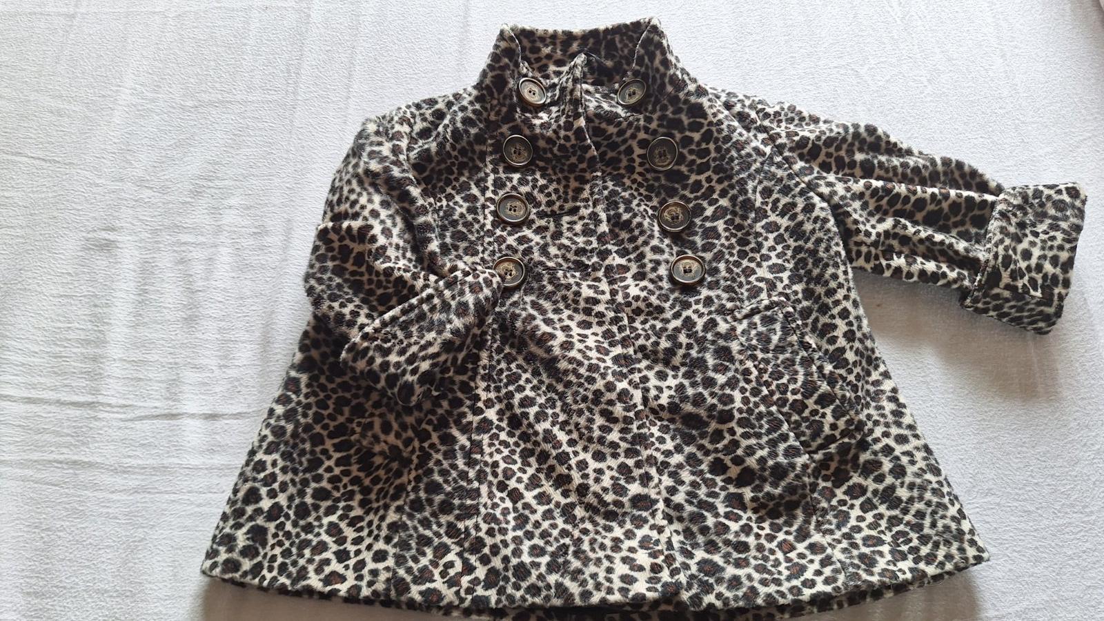 Pekny kabatik s leopardim vzorom v dobrom stave- na materiali trochu vidno pranie. Je tak na prechod, nie je velmi hruby, hoci vrchna latka je hrubsia. Rozmery: dlzka rukavu od goliera: 48cm, od pl...