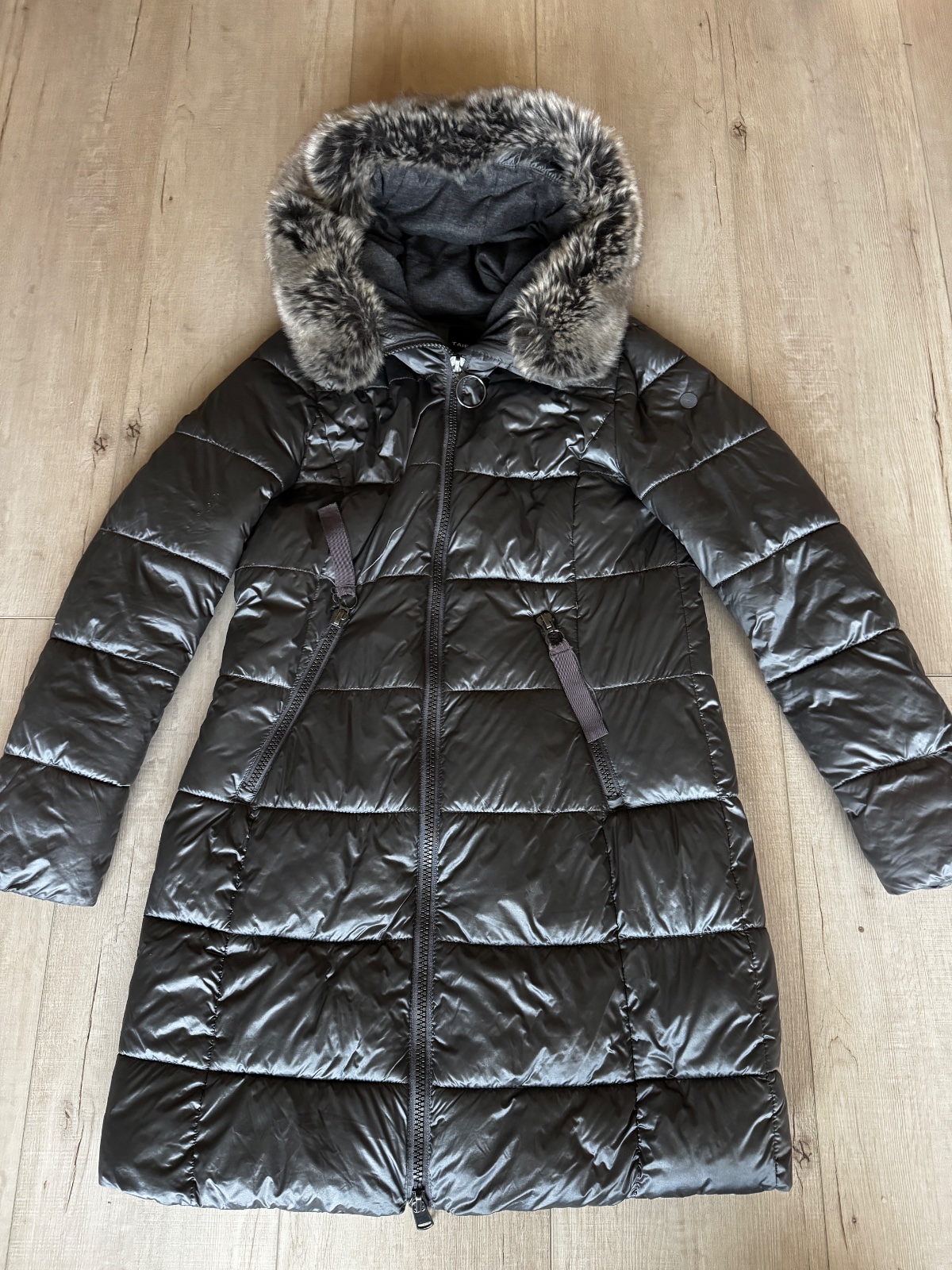Bunda je dlhá, s kapucňou a umelou kožušinou, veľmi pekná a elegantná.