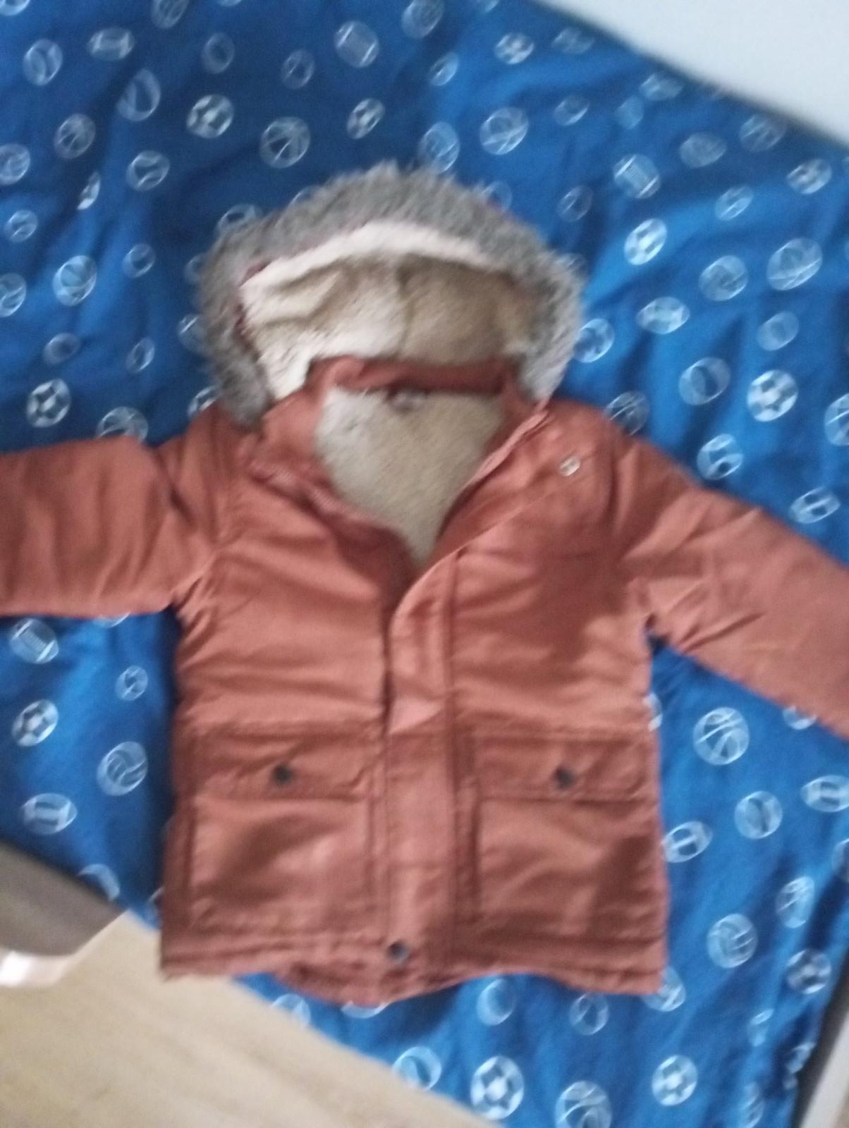 Je skoricovo-hnedej farby,zips funkcny,na ramene sa spravila dierka,tak sa dala nášivka (foto),inak je super,teplucka,