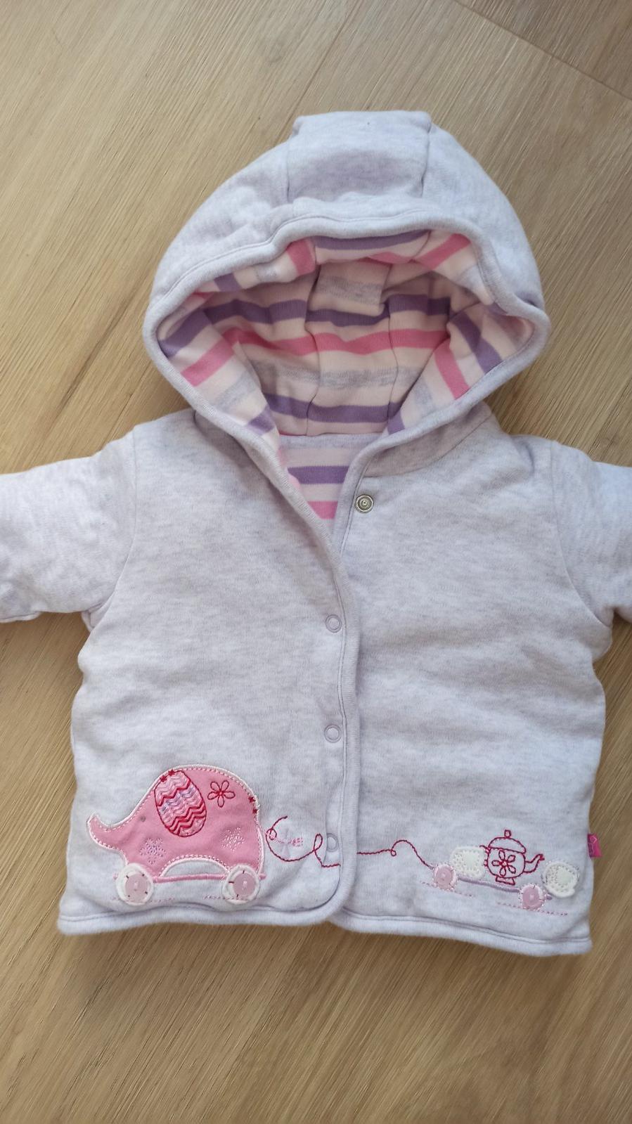 Obojstranná tepláková bundička, veľkosť 0-3mesiace, vhodná na prechodné obdobie, top stav.