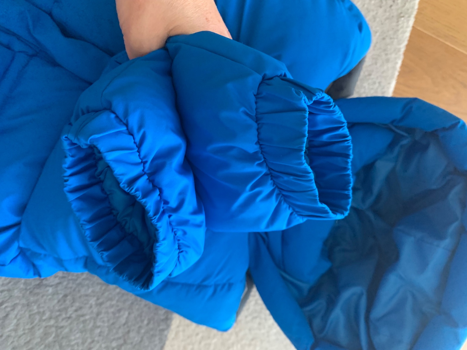 o vlastnostiach pls popátrajte na nete, má polyesterový vrch aj výplň, magateplá a nepremokavá